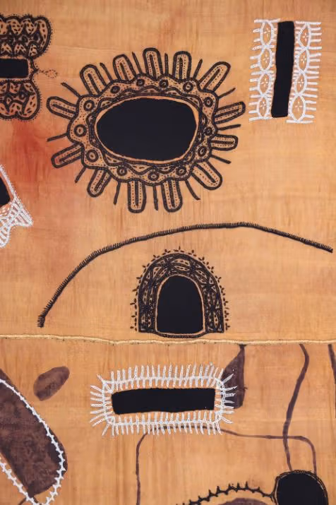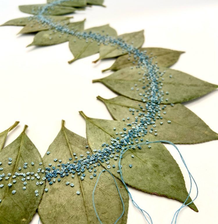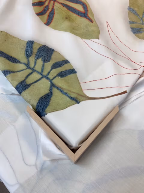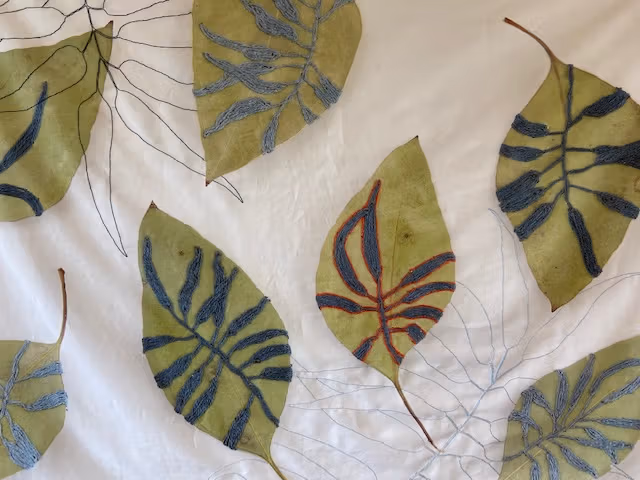 ArtLink commissioned Morii Design to create a bespoke textile piece for Inn The Ground that complements the property’s commitment to sustainability. Morii Design is a dynamic textile studio based in Gandhinagar, Gujarat, India, known for honoring traditional Indian hand-embroidery while embracing a contemporary aesthetic. The studio works closely with craftswomen in rural communities, supporting both the preservation of traditional skills and the livelihoods of those it employs. Morii sources raw materials locally and uses only natural and recycled materials, ensuring a zero-waste production process.