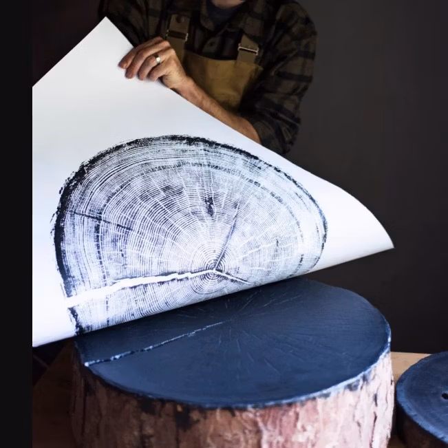 To deepen the connection between guests, art, and landscape, ArtLink partnered with Erik to offer a bespoke printmaking experience. Guests are invited to create their own woodcut print using rings from ancient Oregon trees, resulting in a one-of-a-kind artwork to take home. The finished piece acts as a meaningful reminder of their stay, a personal reflection of the time spent in harmony with the natural world.