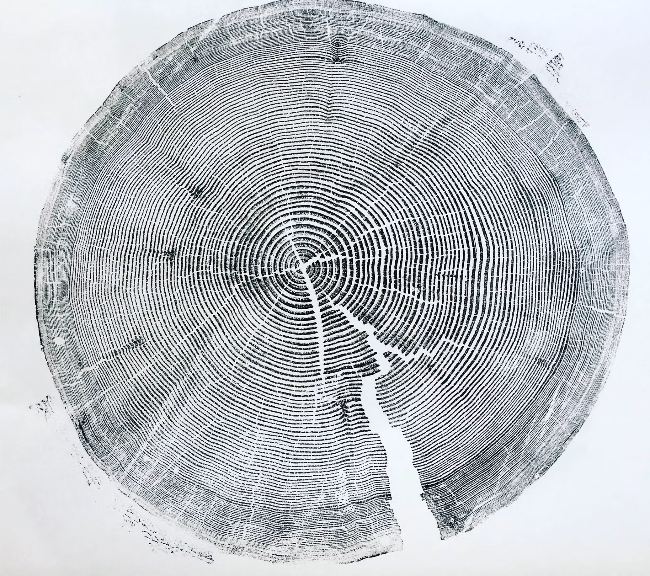 ArtLink curated artworks that celebrate the native flora and fauna of Oregon. One highlight is a tree ring print by local woodcut artist Erik Linton, created from the cross-section of a fallen tree sourced in the region. Each ring captures the passing of time and the silent history of the land, offering an organic record of growth, climate, and place.