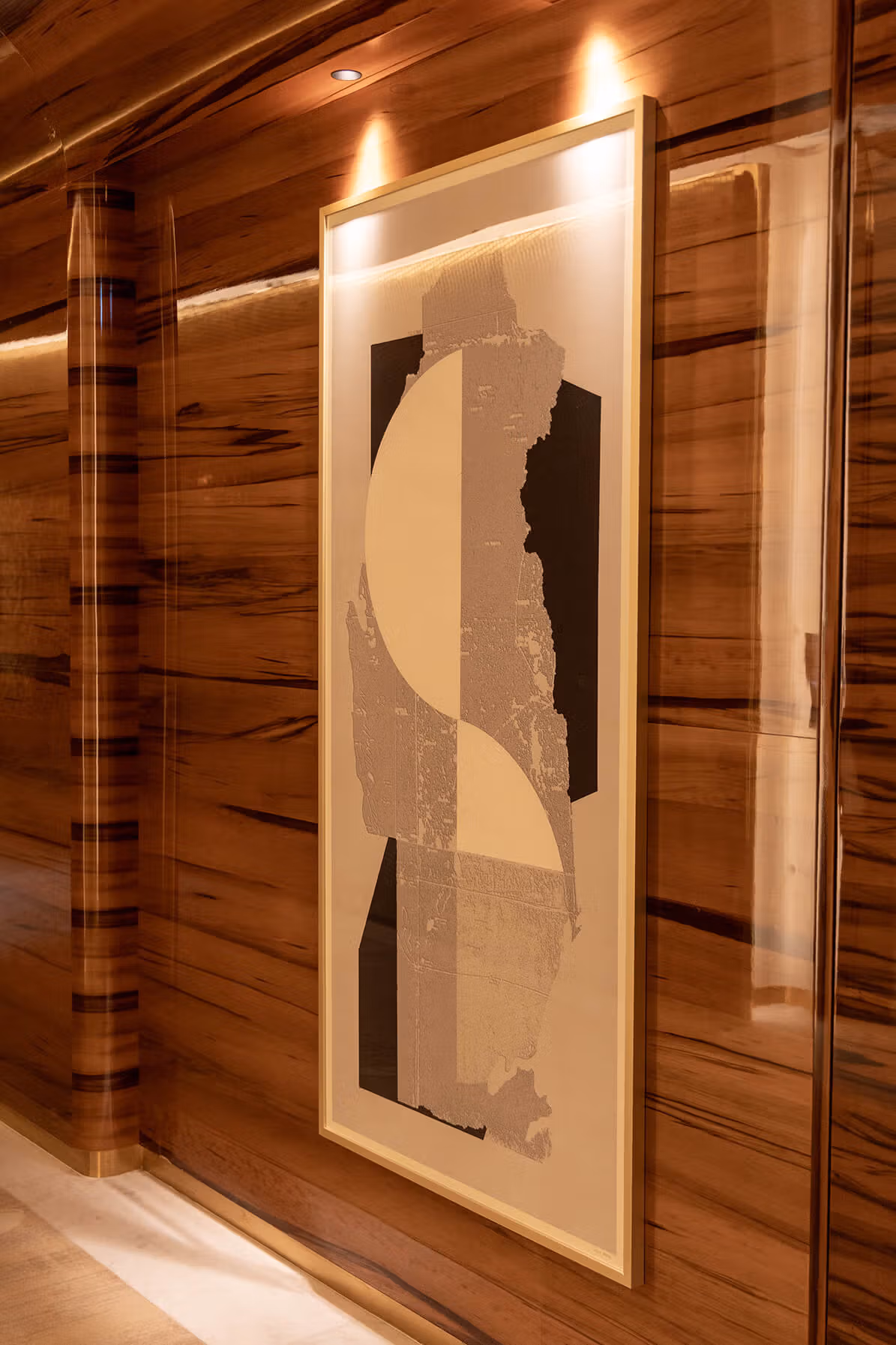 Qatar’s position at the crossroads of major trade routes has long brought diverse influences and materials to its shores, shaping a tradition of refined craftsmanship. The works in the Amiri Lounge draw inspiration from the art of jewelry-making. Glass artists James Lethbridge and Hanne Enemark were inspired by the exceptional pieces in the Al Thani Collection in Paris—assembled by the Qatari royal family—echoing a legacy of evolving artistic excellence.