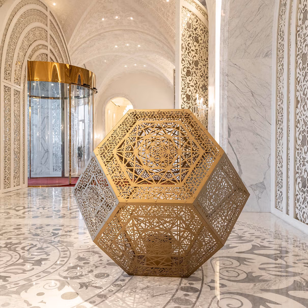 For centuries, the Qatari people have stood out as cultural traders, confidently blending global influences into their own art and craft while proudly sharing their heritage with the world. This spirit of exchange became the gold thread we wove throughout the art collection for the Katara Towers complex, home to both Raffles and Fairmont Doha.