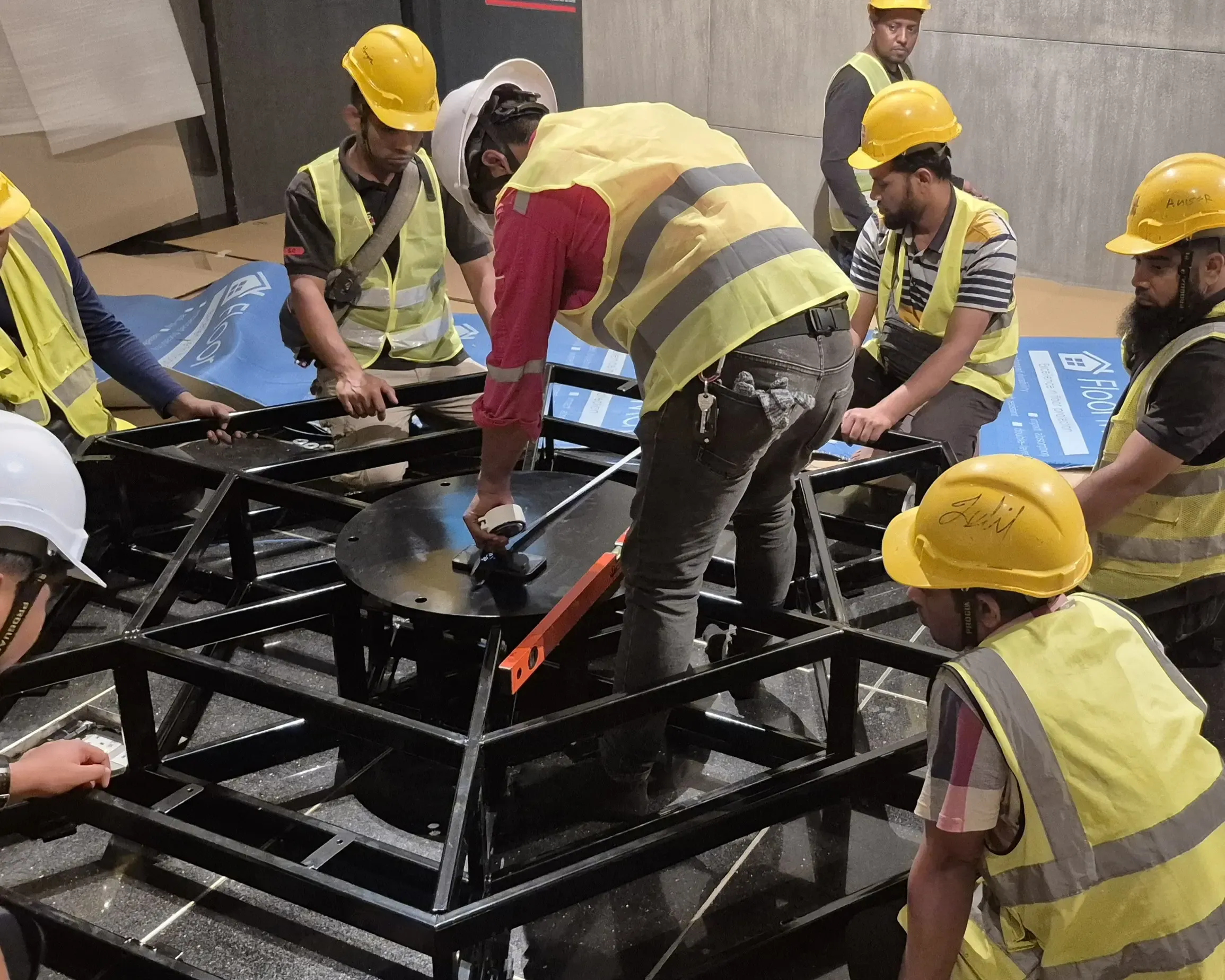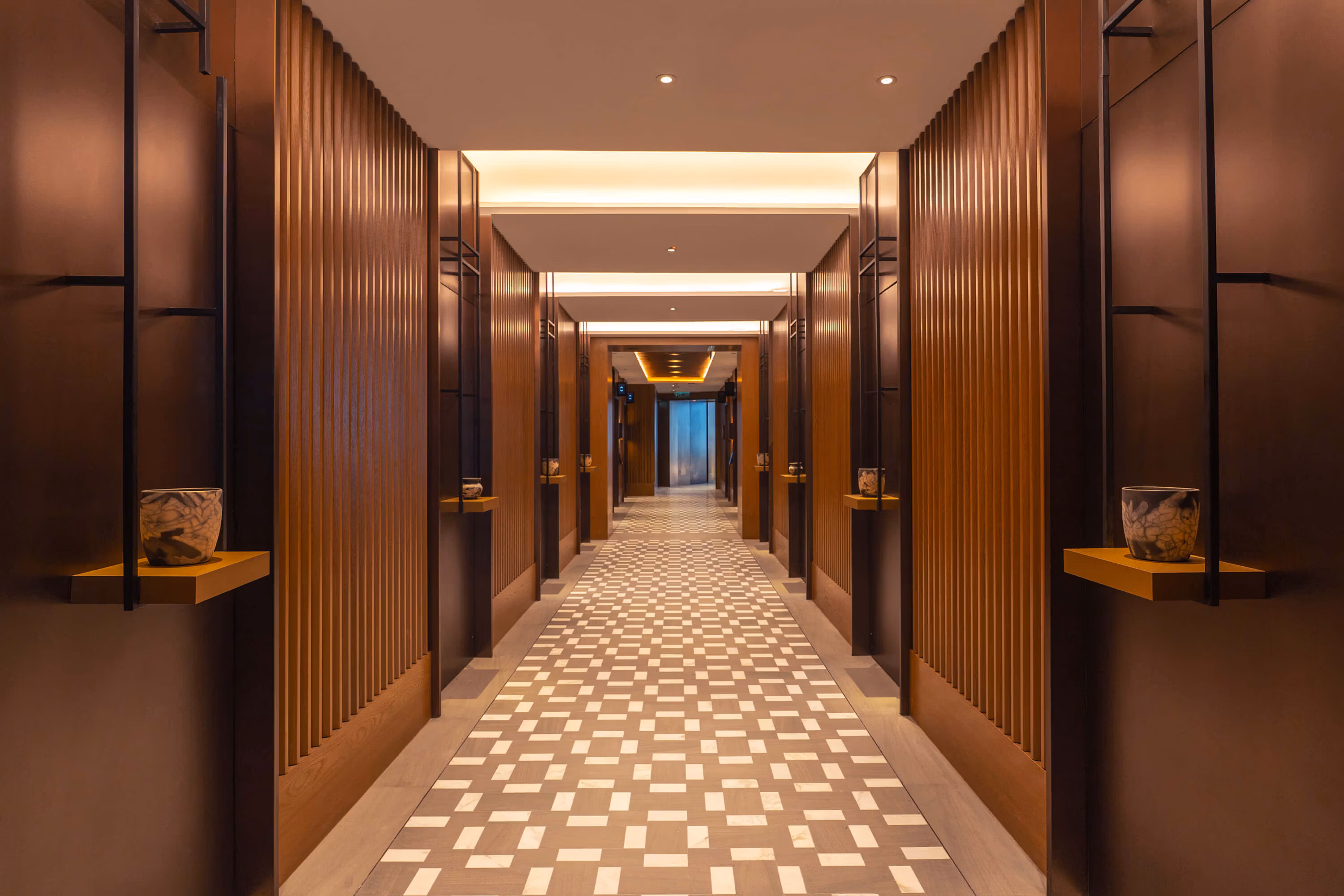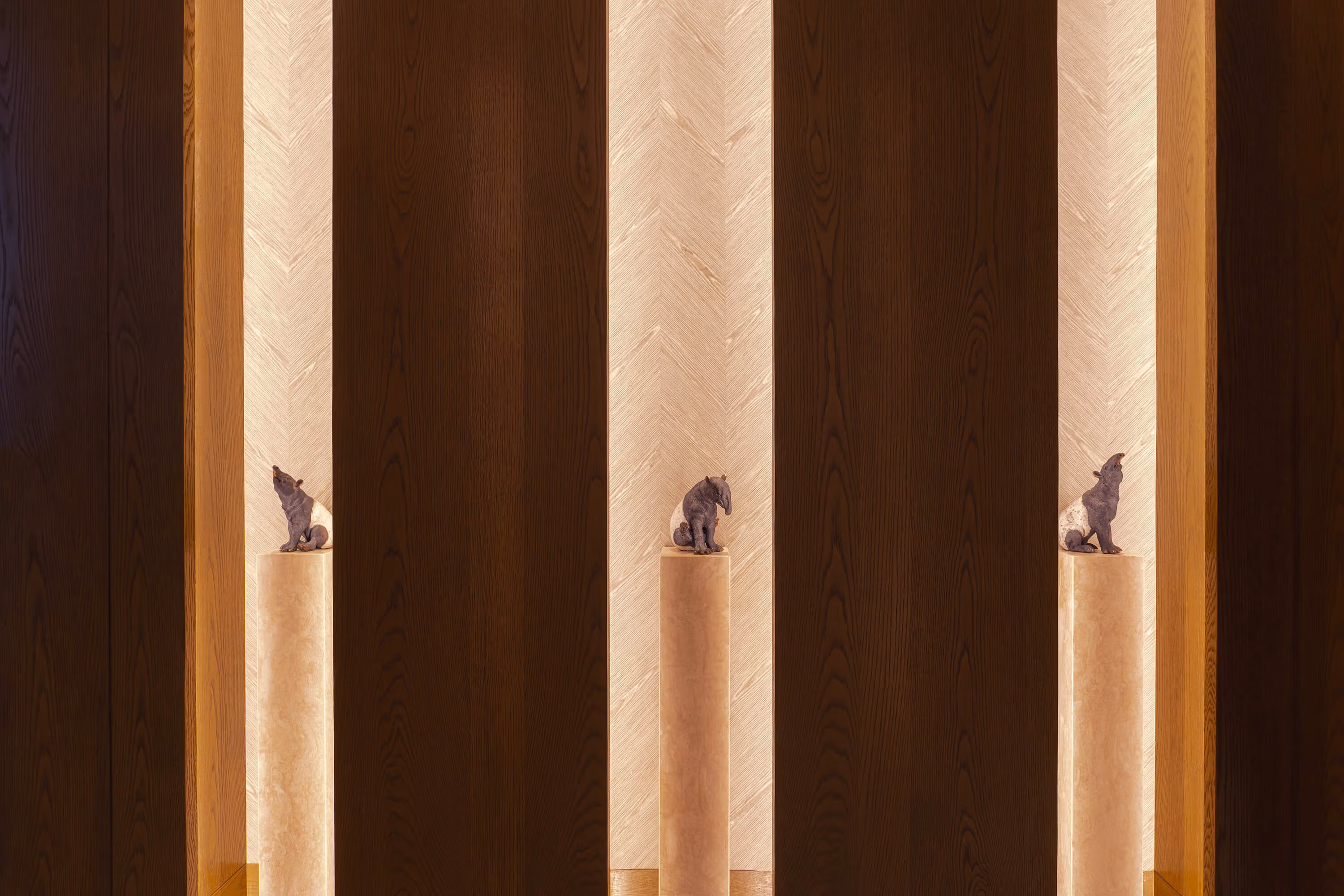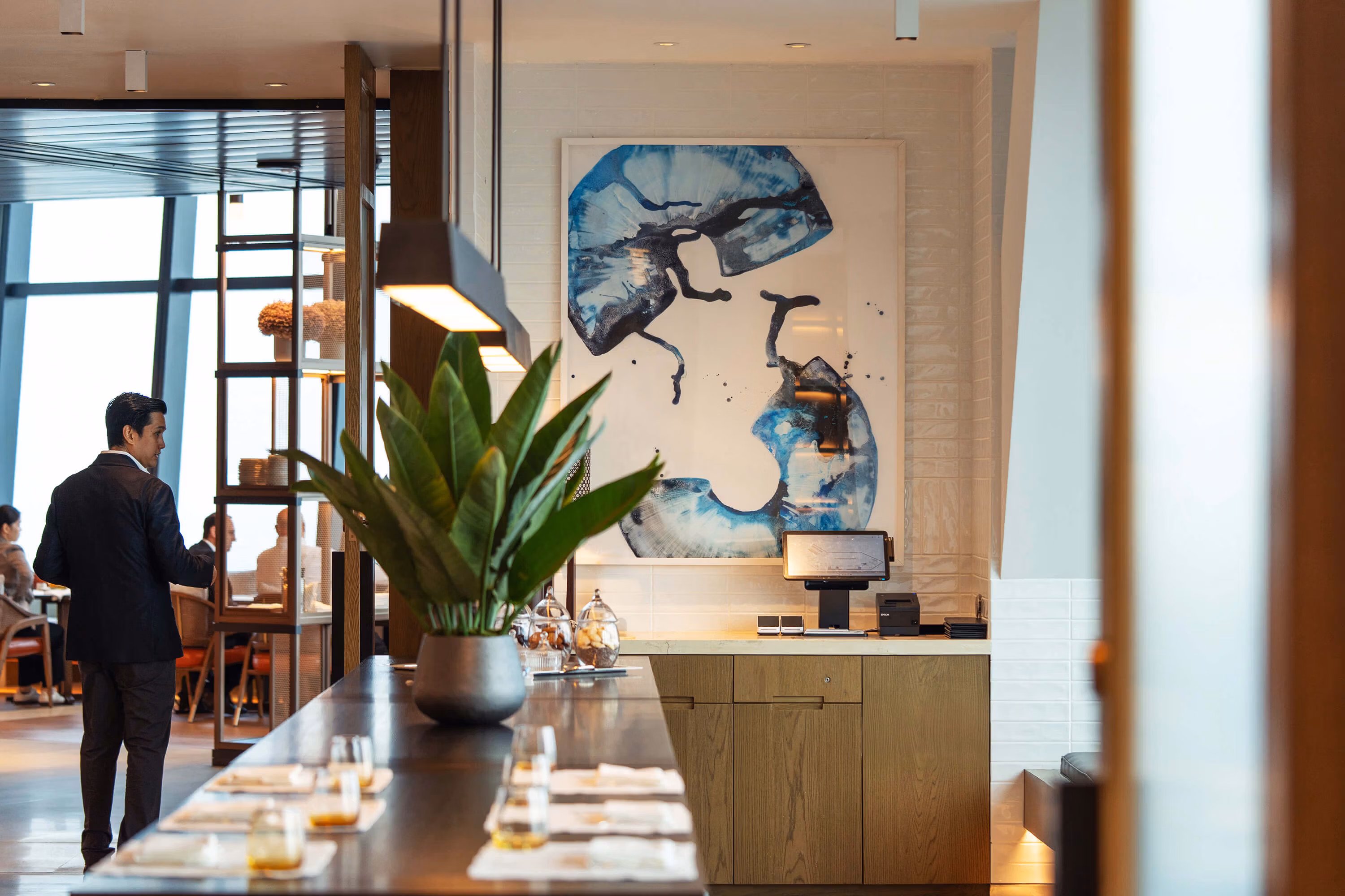 As guests step into the atrium, they are met by a breathtaking six meter tall sculpture by acclaimed Malaysian artist Abdul Multhalib Musa. Drawing inspiration from Malaysia’s lush flora and the motifs woven throughout its rich cultural heritage, Abdul transforms steel into flowing, organic forms that seem to move with light and air. A highlight of the collection, this special commission celebrates the local flora and the artistry of Malaysia, offering a striking first impression for every visitor. Bringing the piece to life was no small feat. Because of the hotel's location on the 102nd floor, the sculpture had to be transported in small sections, and assembled on-site by a skilled logistics team. Even the base was engineered in modular parts, with each connection point designed to blend seamlessly into the form so that every joint became an intentional part of the sculpture’s design.