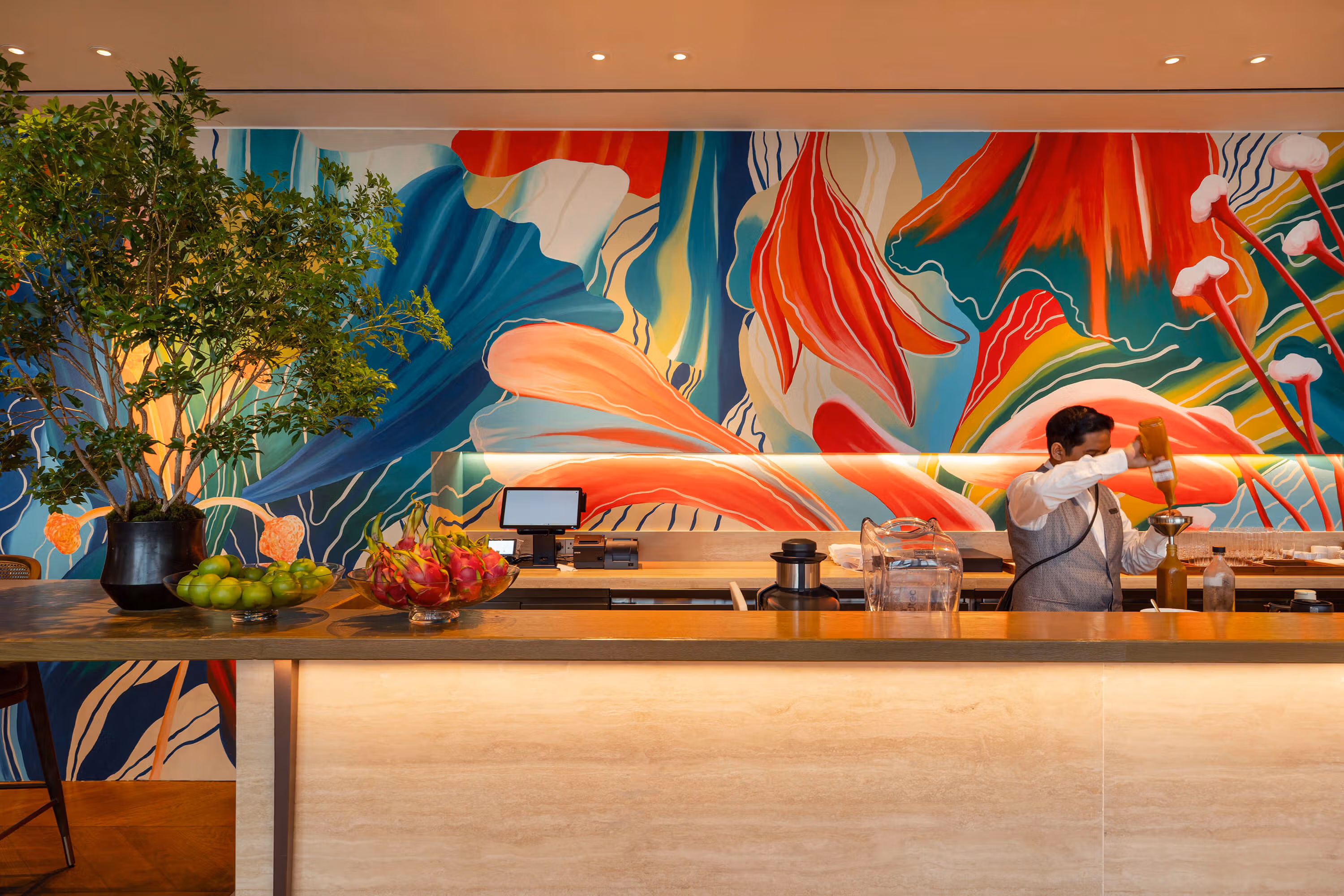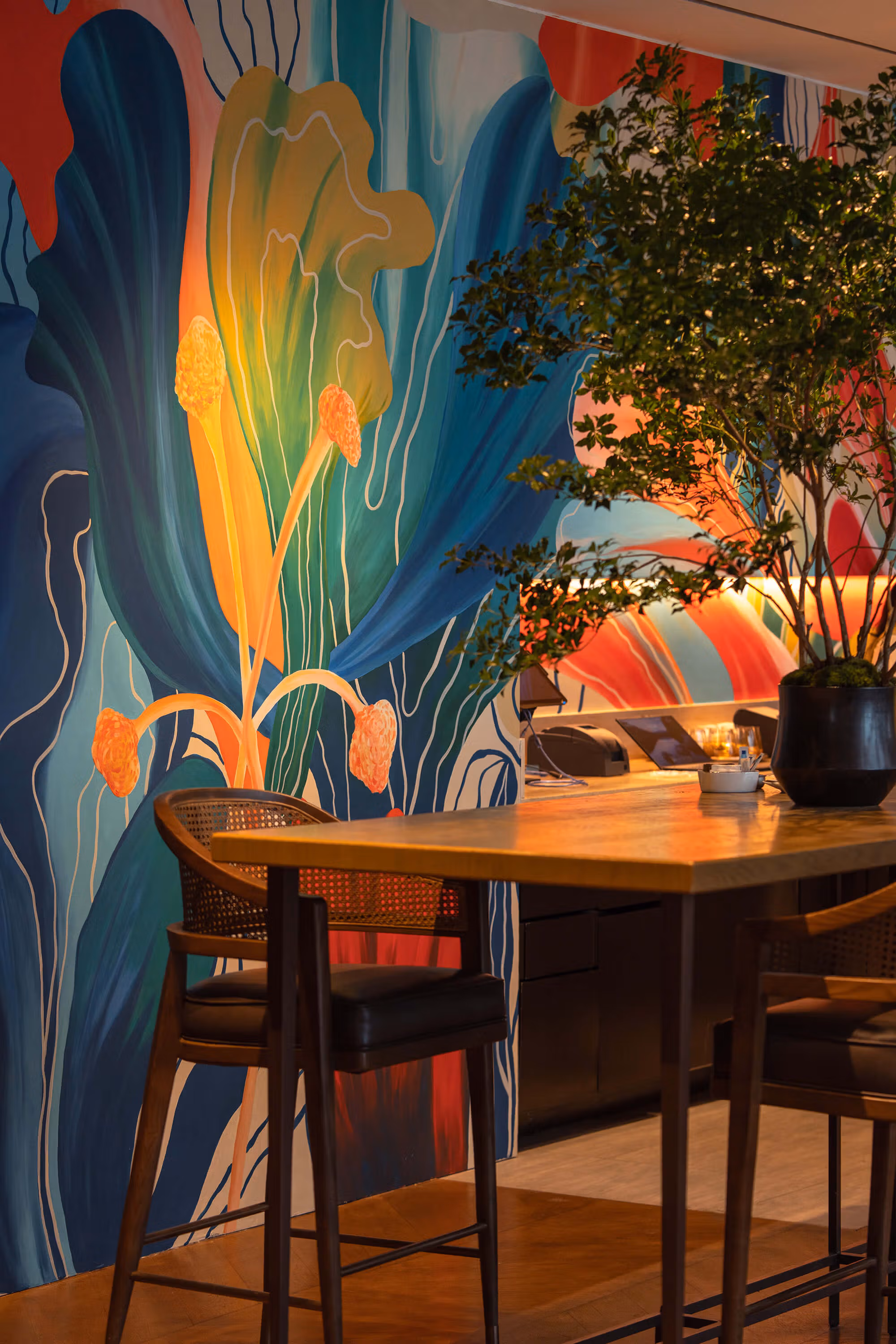Developed in close collaboration with the client and under the art direction of our curators, the piece was painted on site, bringing a distinctly local and handcrafted presence to the space.
