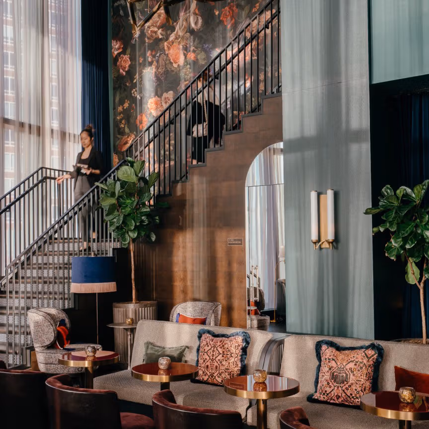 Inspired by the iconic local landmark, ArtLink curators art-directed a series of botanical wall artworks for the hotel as a tribute to the city’s natural legacy. Referencing the historic chain of nine connected parks, the works evoke a sense of calm, connection to nature, and quiet reflection. Wrapped along the hotel’s walls and ceilings, the artworks create an immersive experience rooted in place and the surrounding landscape.