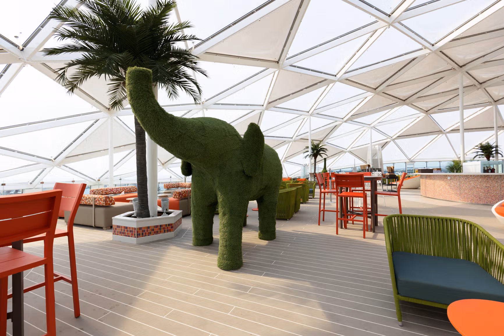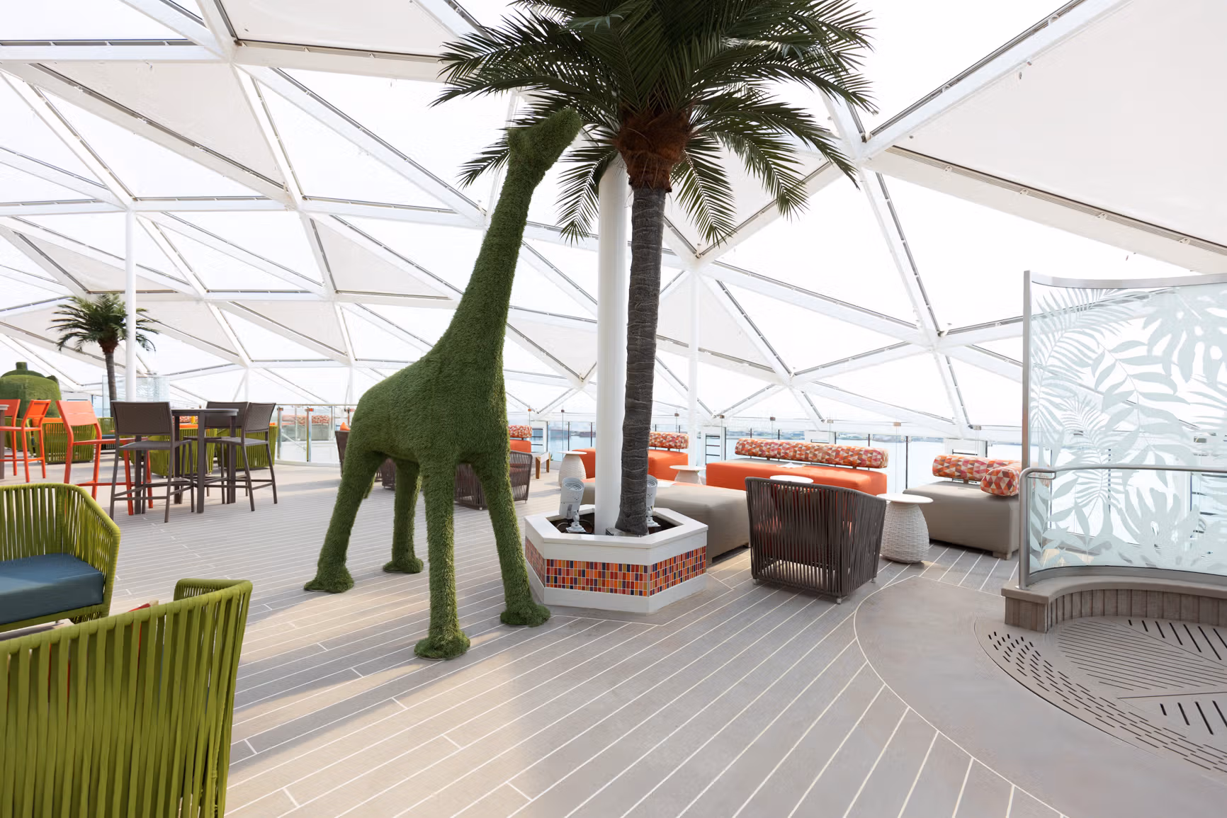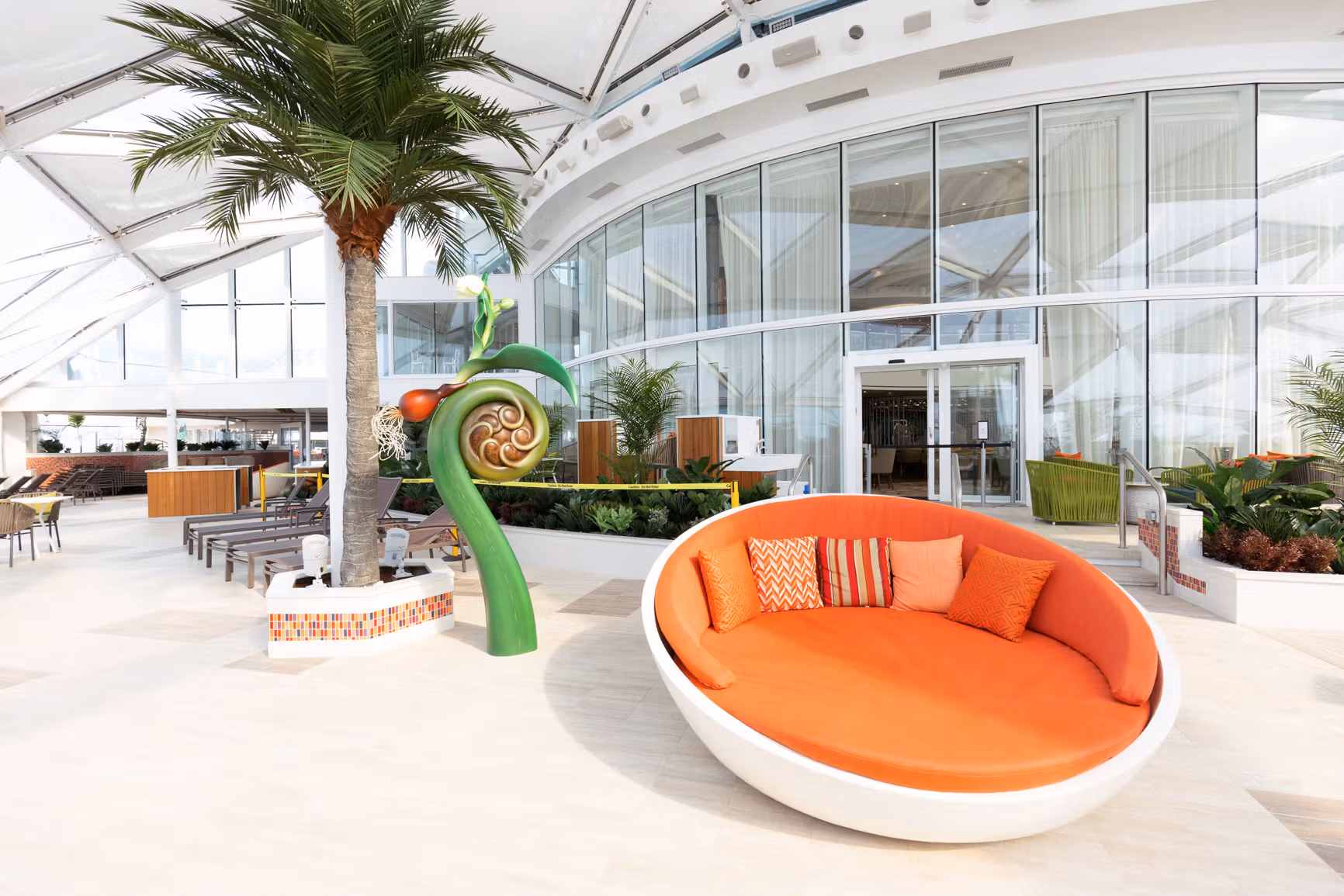 A unique collection for a unique space. The solarium neighborhood spreads across three decks where guests can gather to socialize under the sun, just like any neighborhood park.