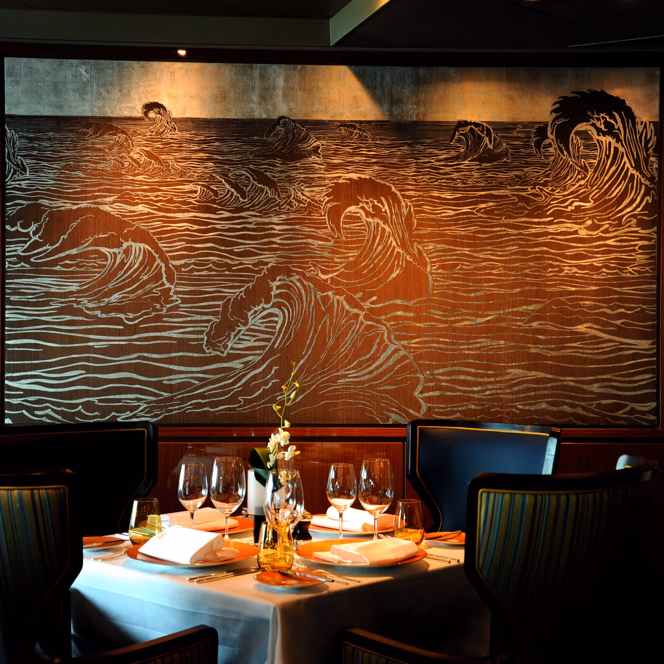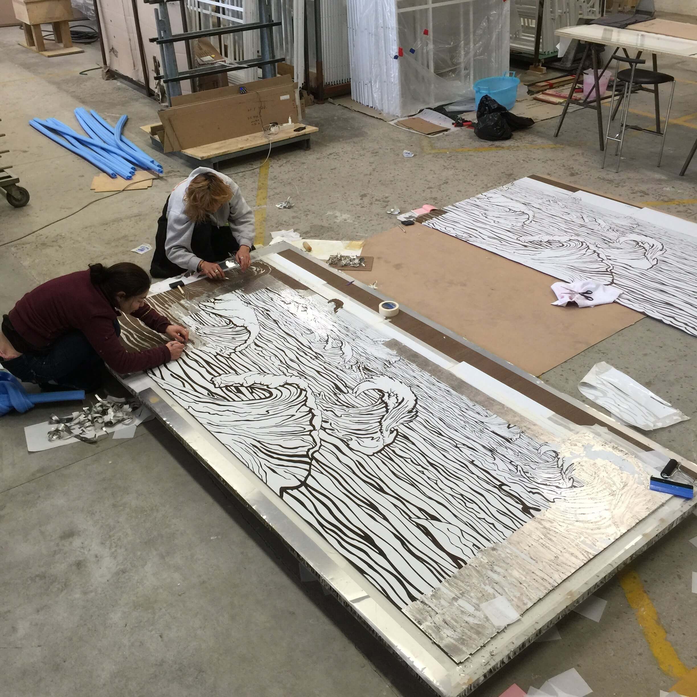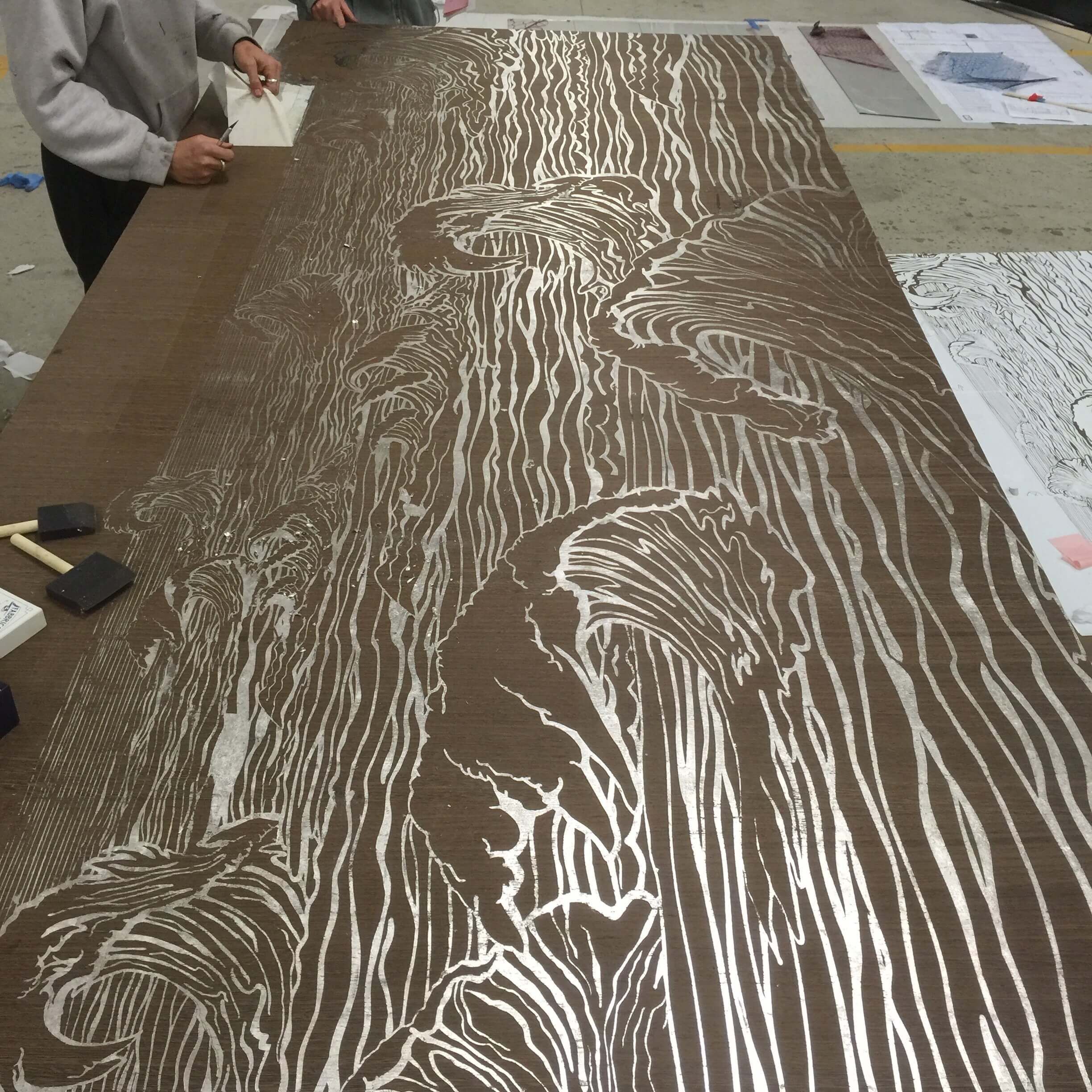 In our recently completed project for the Holland America Line MS Koningsdam, we had the unique opportunity to collaborate on a site-specific work together for the Pinnacle Grill restaurant onboard. As a point of inspiration for the work, Sandra drew inspiration from the very material she works with.