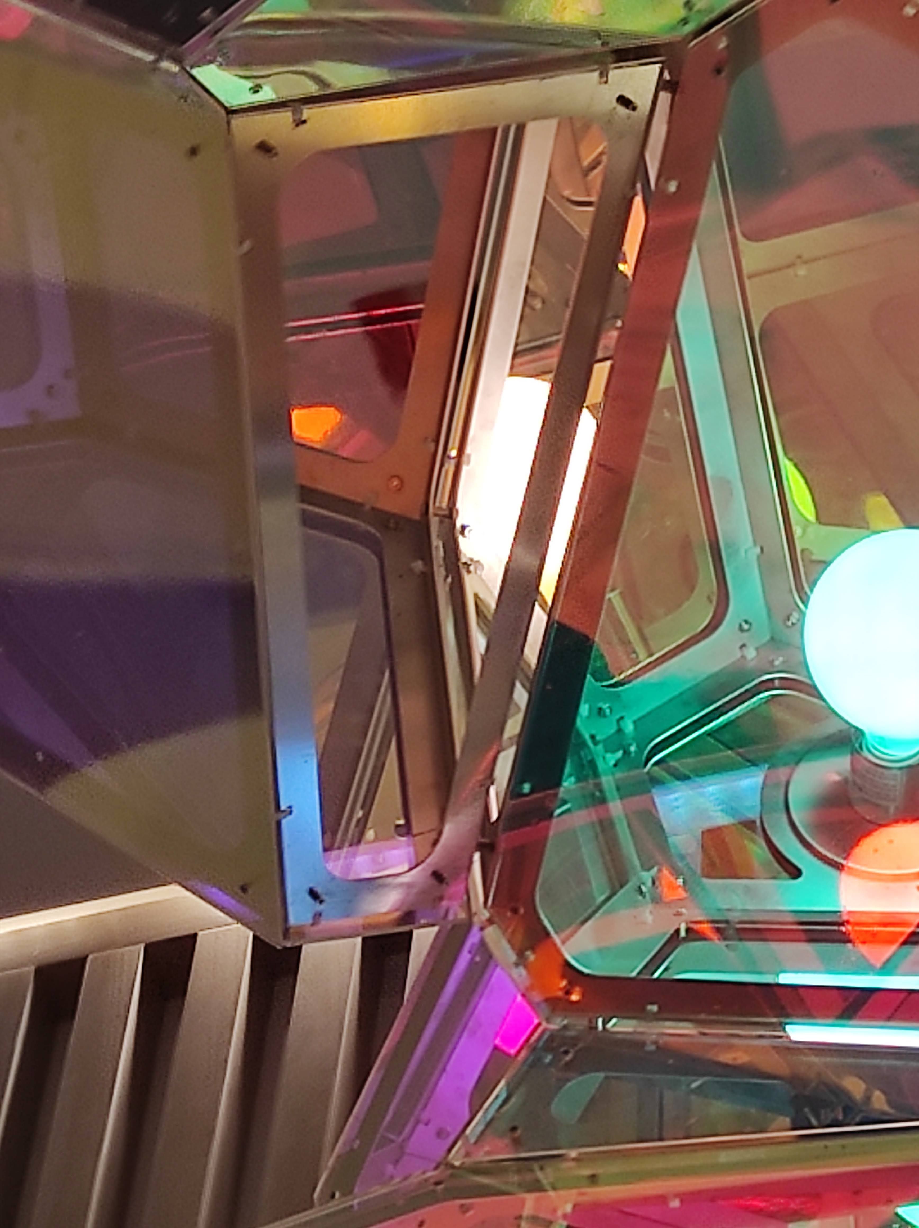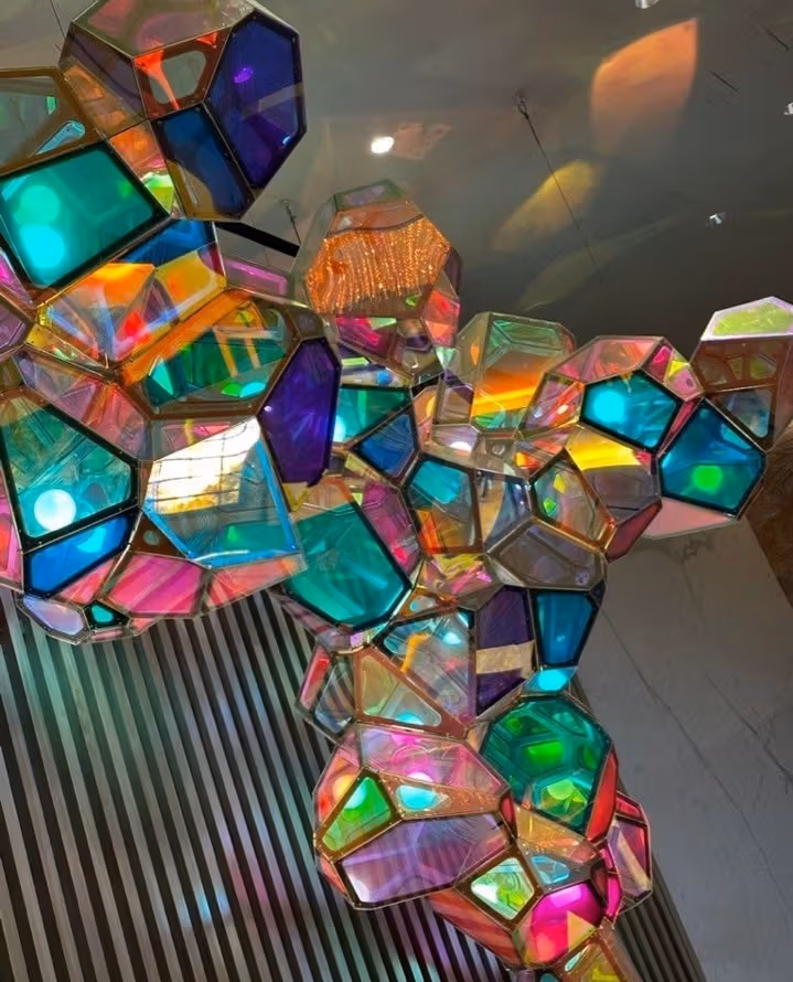 Suspended above the VIP check-in desk, is a light installation of globes that ArtLink commissioned SOFTlab design studio to produce. SOFTlab combines a research-based design practice with a focus on the way technology, craft, and materials can be used to explore the boundaries between architecture and people.