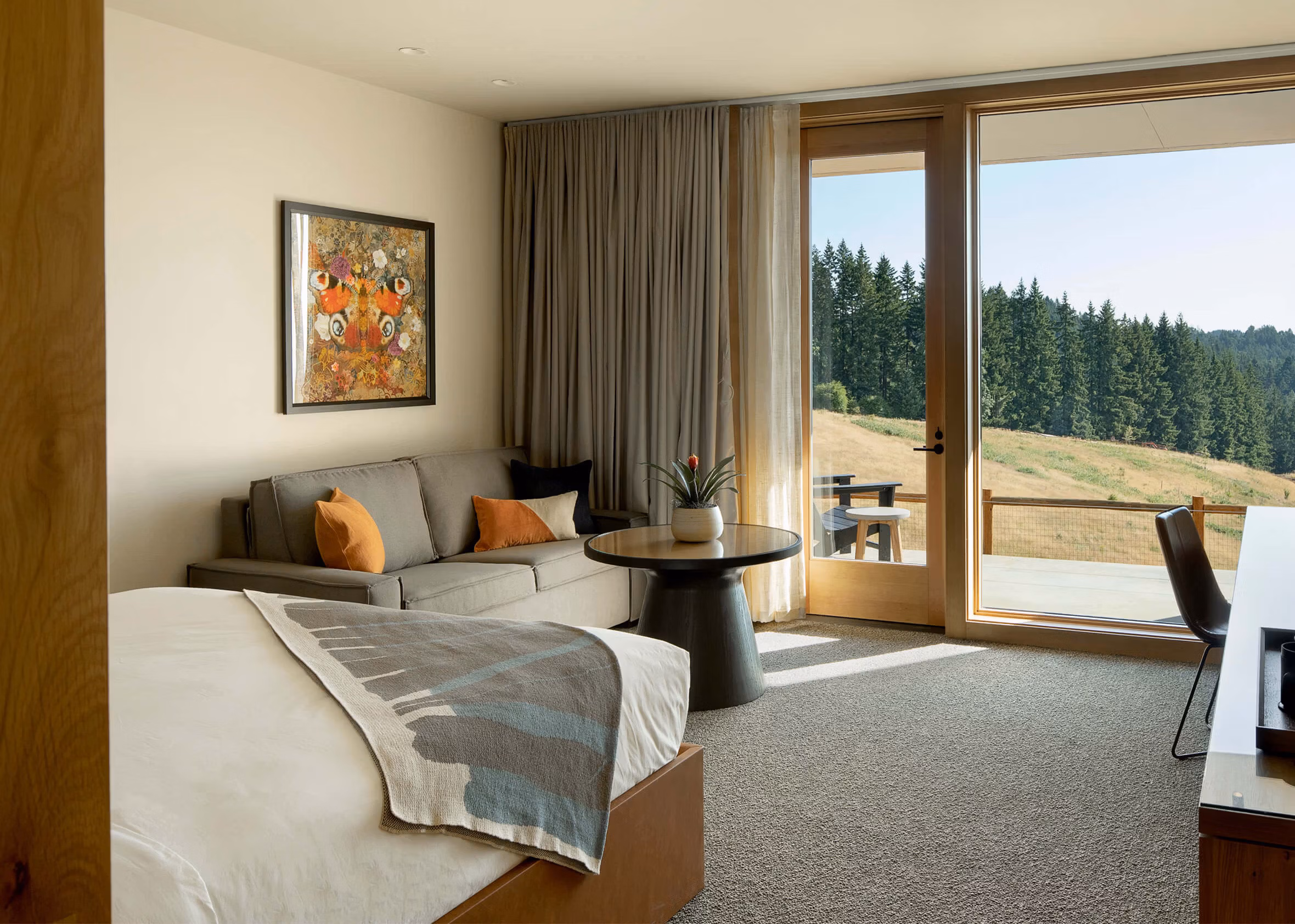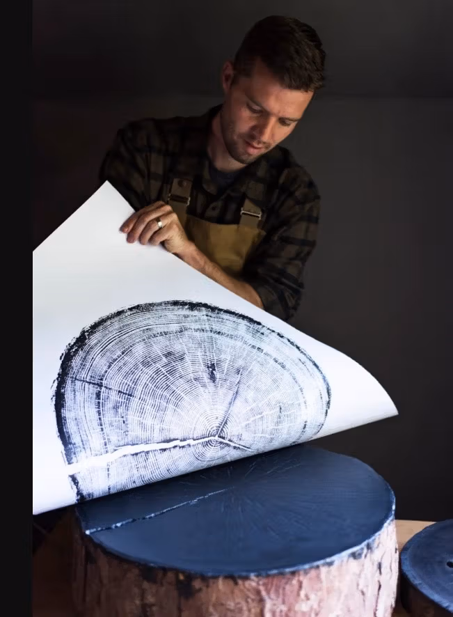 To deepen the connection between guests, art, and landscape, ArtLink partnered with Erik to offer a bespoke printmaking experience. Guests are invited to create their own woodcut print using rings from ancient Oregon trees, resulting in a one-of-a-kind artwork to take home. The finished piece acts as a meaningful reminder of their stay, a personal reflection of the time spent in harmony with the natural world.
