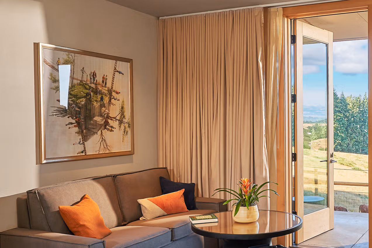 Set amidst the picturesque hillside of Oregon wine country is luxury getaway Inn The Ground. Founded on the principle of “hospitality for all species,” the Inn was built on the property of The Ground, a regenerative farm, aiming to provide guests the opportunity to connect with nature and the living beings cared for on the farm. Inn The Ground pioneers a fresh and important understanding of our relationship with life; one that celebrates and weaves together our connections with the land from which we came, and all that grows from it. At Inn the Ground, guests can connect to their roots, to the moment and to one another. The art collection seeks to embody the character of the property, highlighting and promoting its core values of sustainability and harmony with nature.