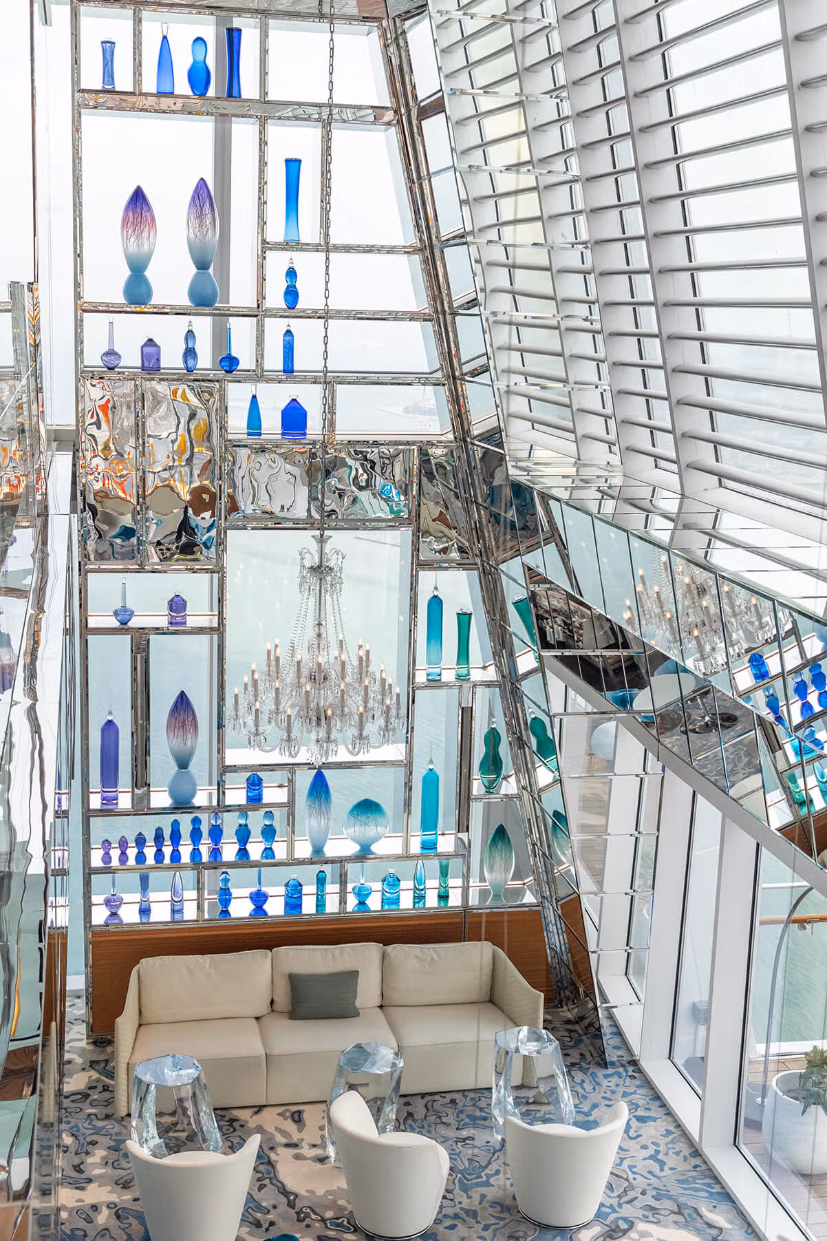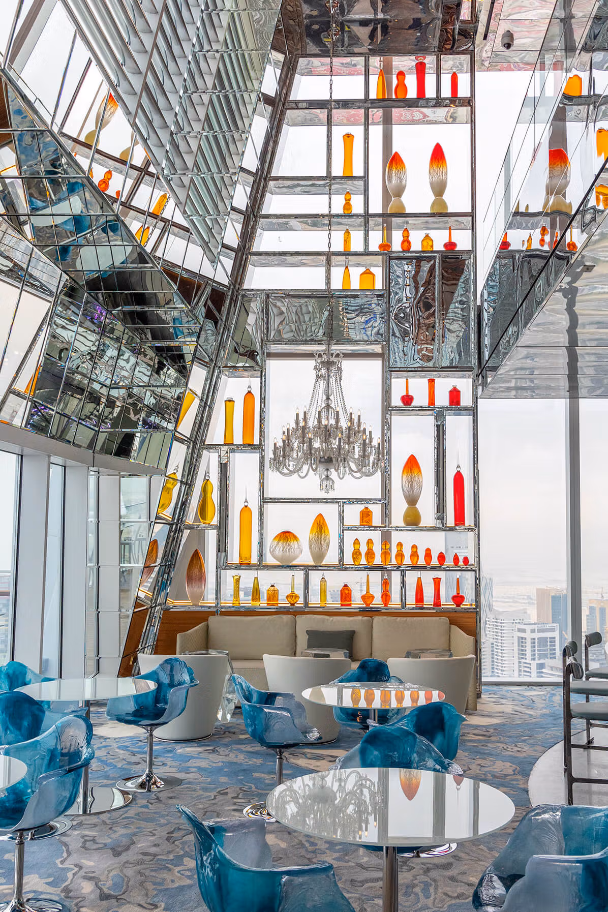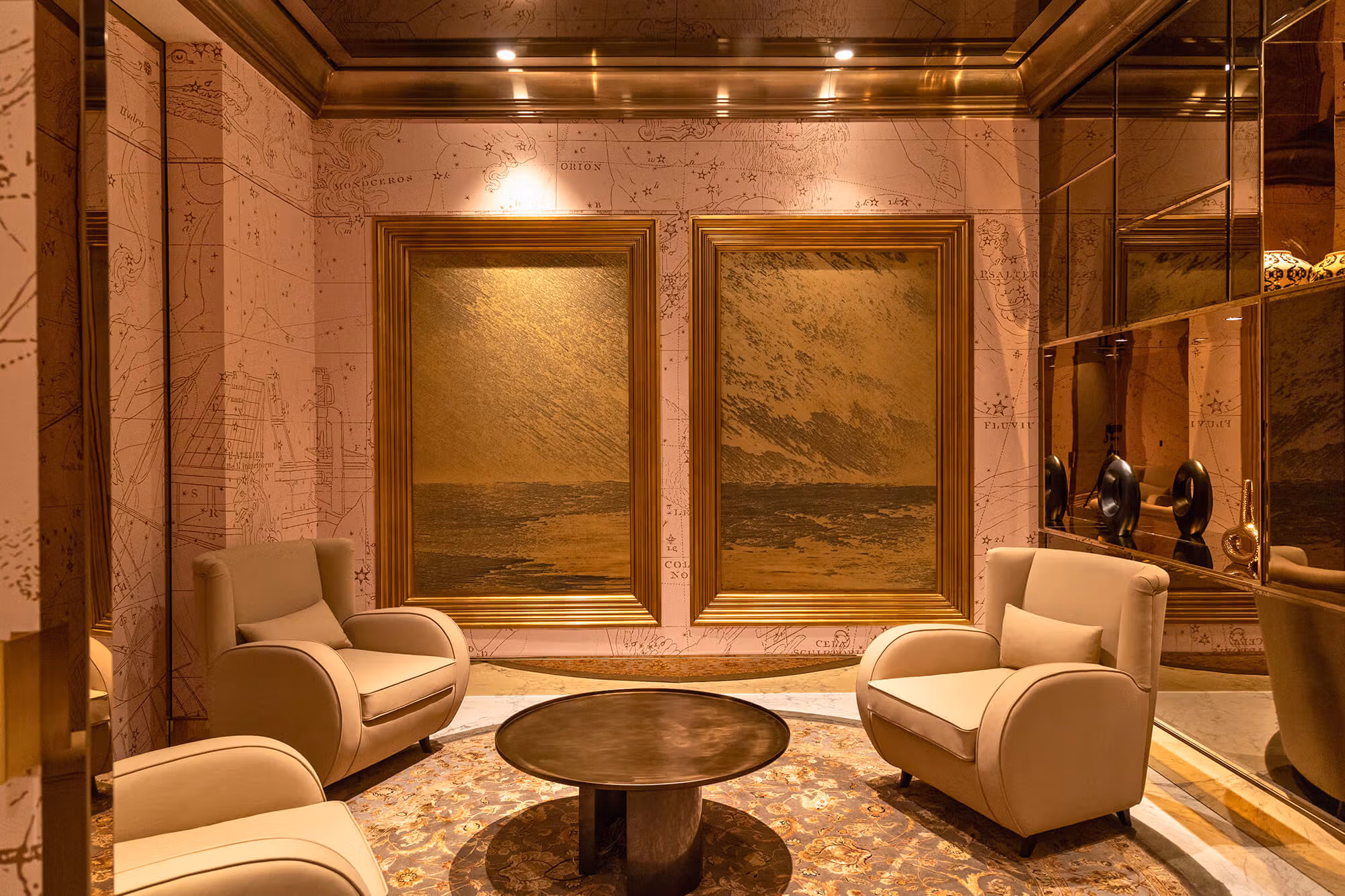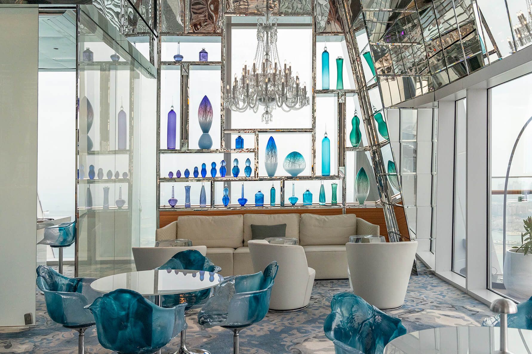 Qatar’s position at the crossroads of major trade routes has long brought diverse influences and materials to its shores, shaping a tradition of refined craftsmanship. The works in the Amiri Lounge draw inspiration from the art of jewelry-making. Glass artists James Lethbridge and Hanne Enemark were inspired by the exceptional pieces in the Al Thani Collection in Paris—assembled by the Qatari royal family—echoing a legacy of evolving artistic excellence.