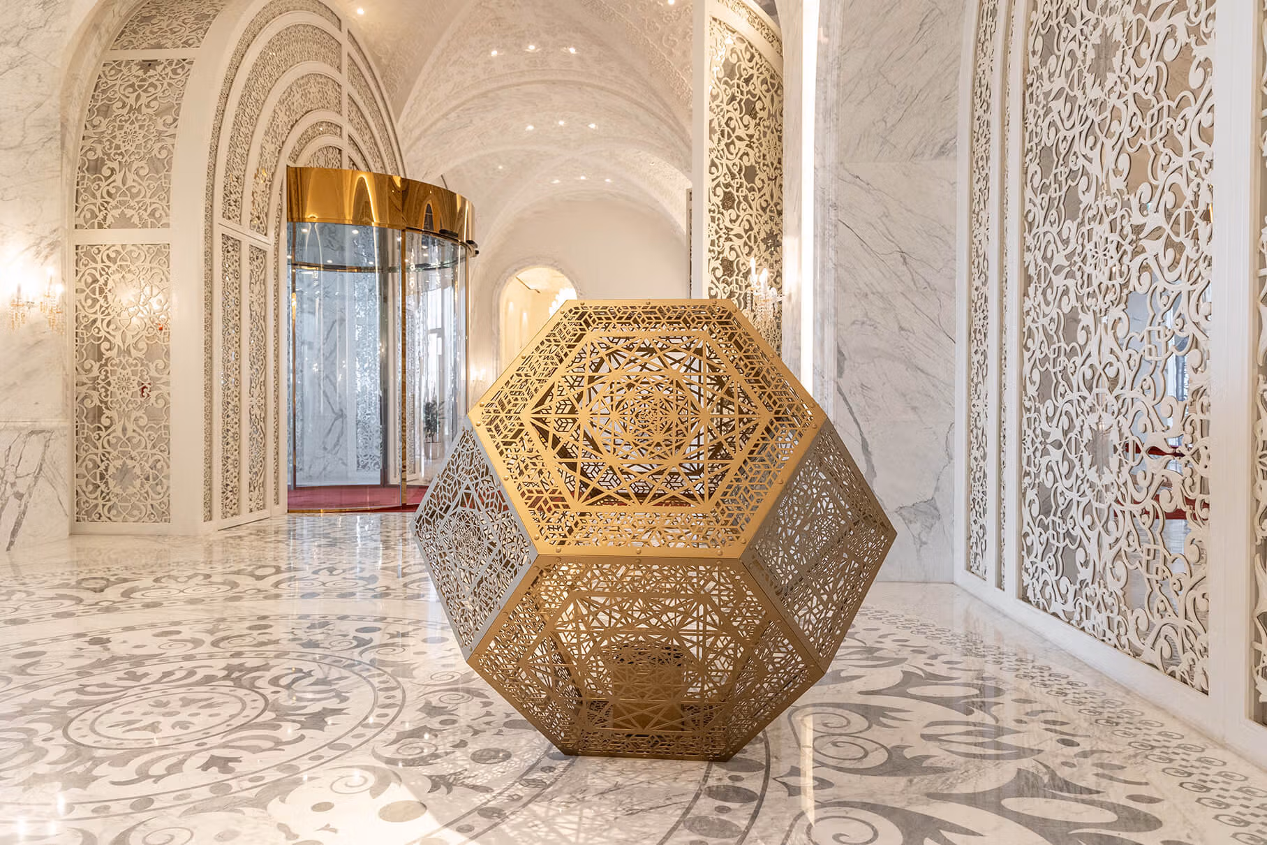 For centuries, the Qatari people have stood out as cultural traders, confidently blending global influences into their own art and craft while proudly sharing their heritage with the world. This spirit of exchange became the gold thread we wove throughout the art collection for the Katara Towers complex, home to both Raffles and Fairmont Doha.