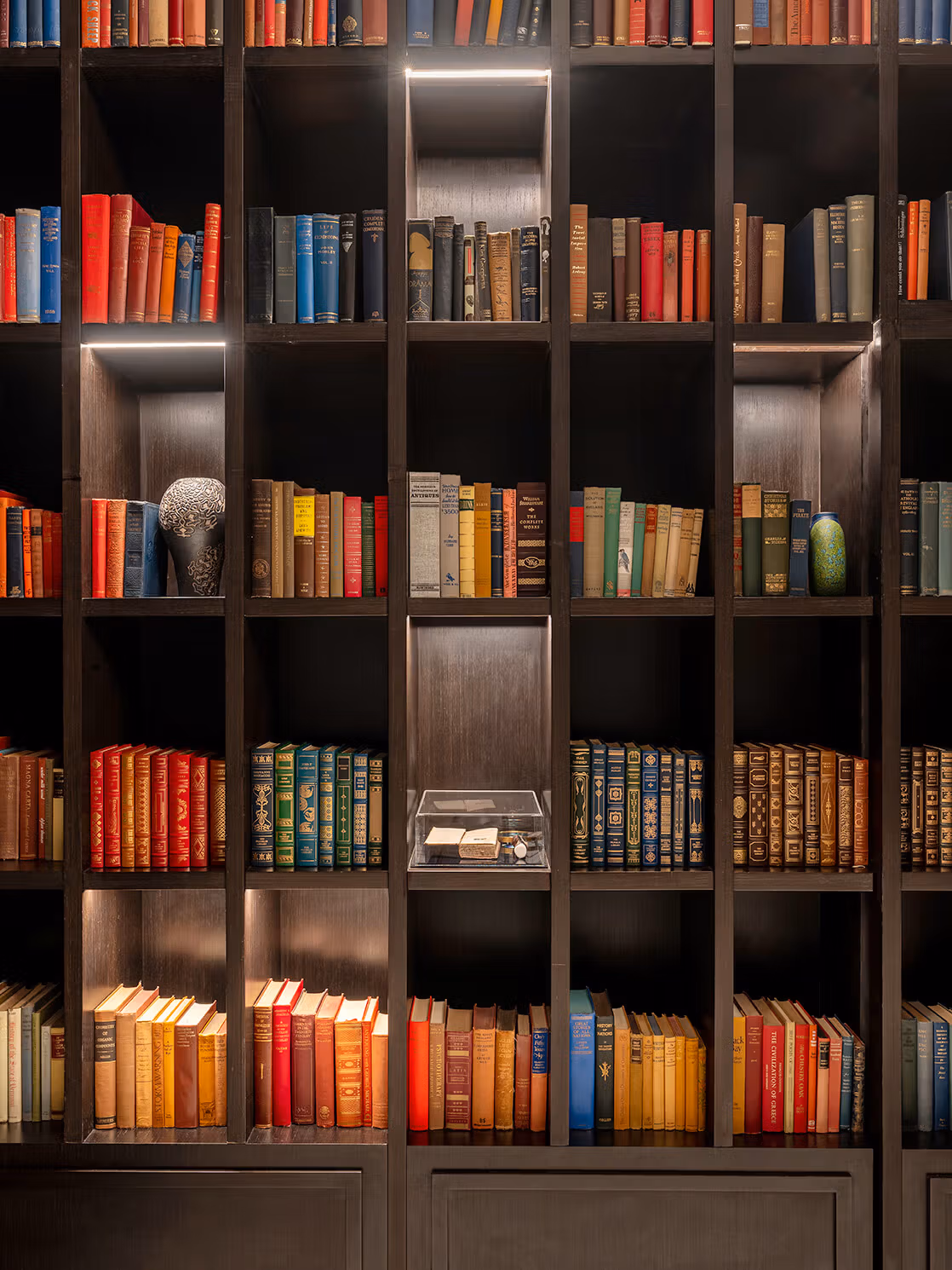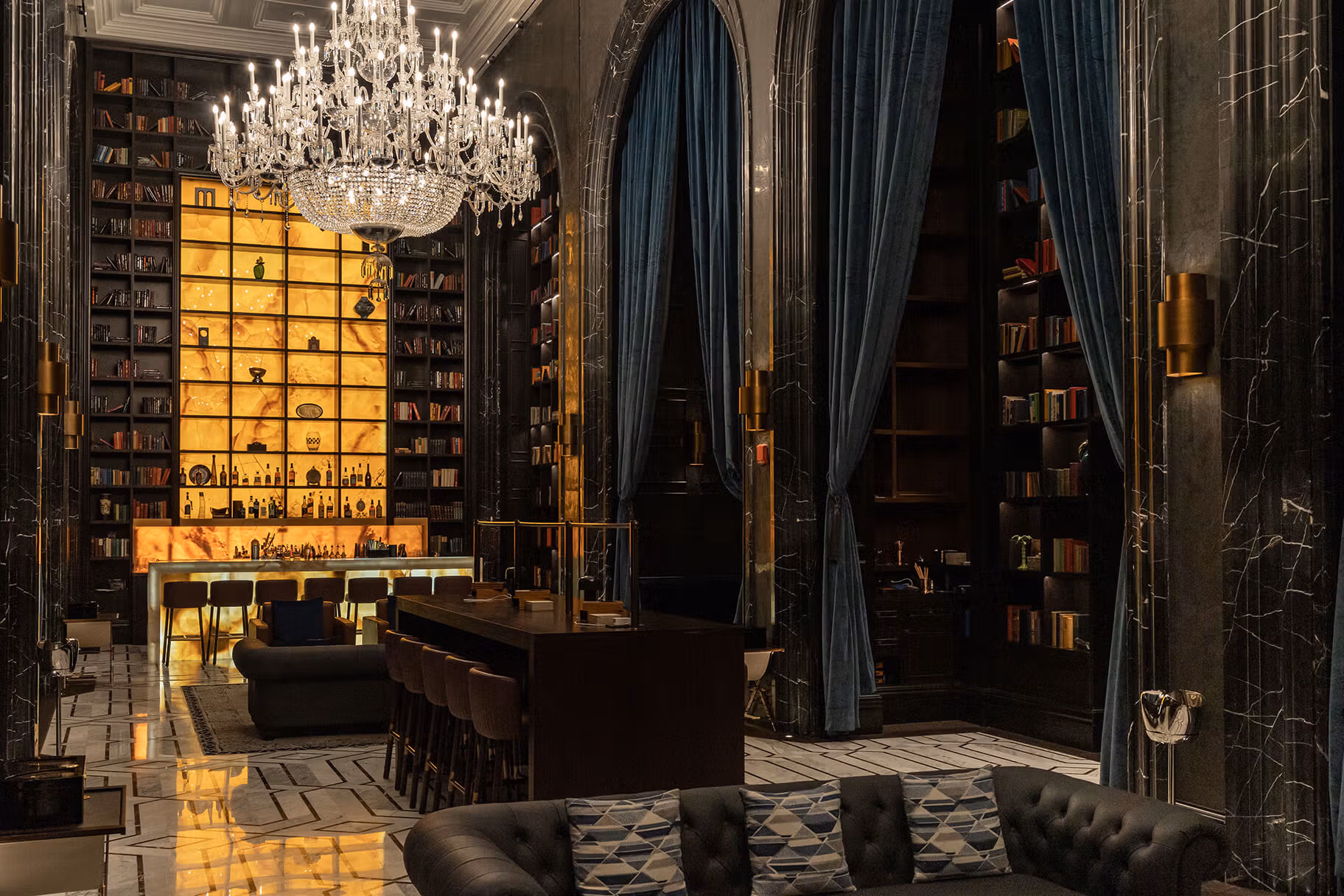 The library in the Blue Cigar Lounge is the pulsating cultural heart of the project, a pediment to the celebration of the exchange of cultures. Curated to create a unique guest experience, the bar is surrounded by books, inviting conversation, shared experiences, and the indulgence of a wealth of knowledge drawn from diverse cultures.