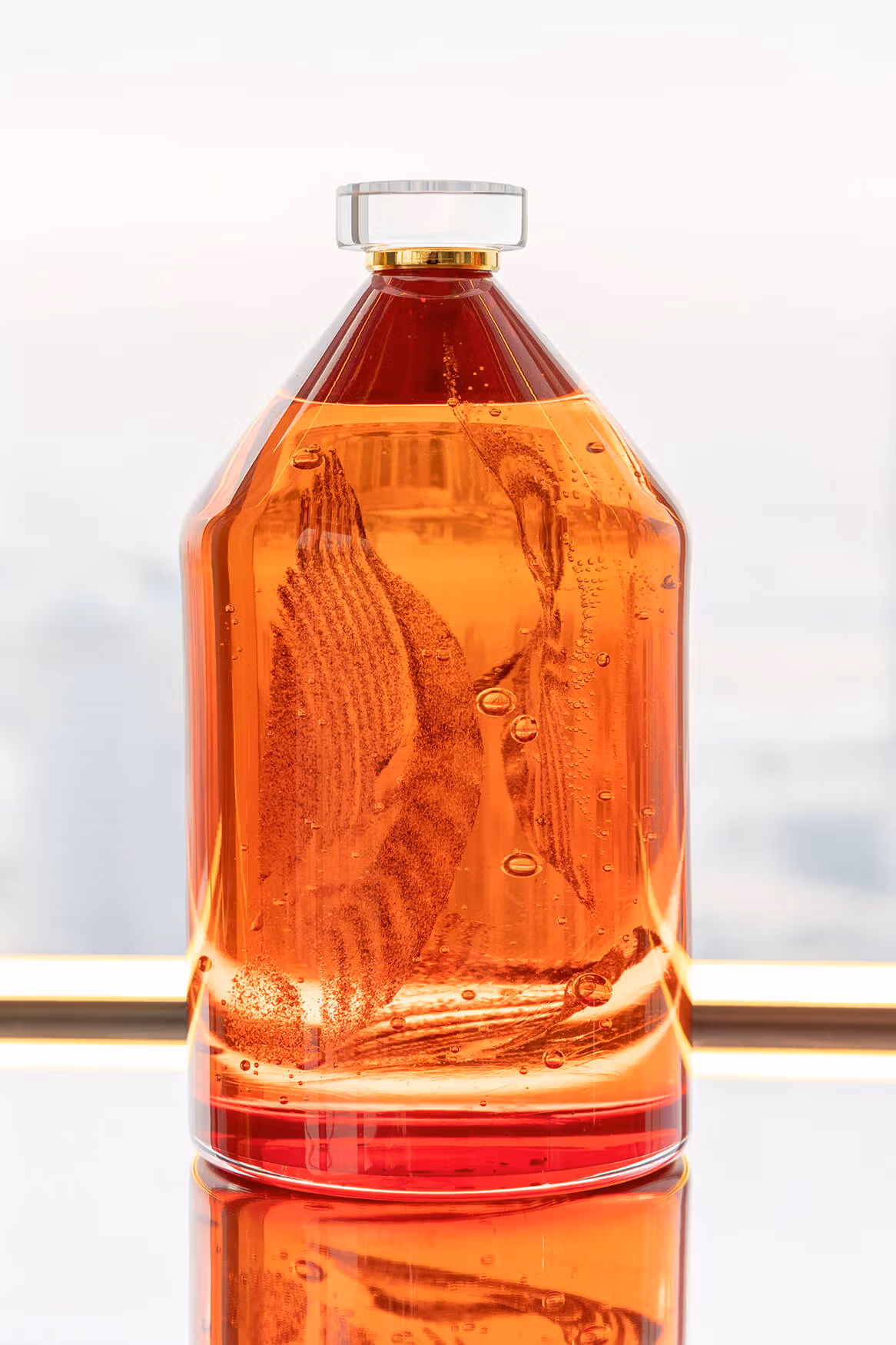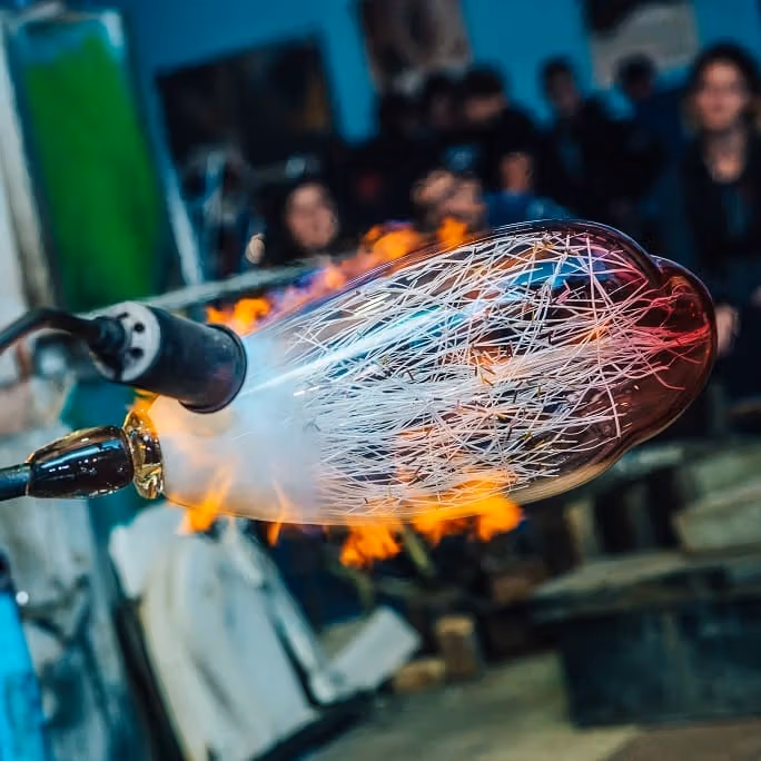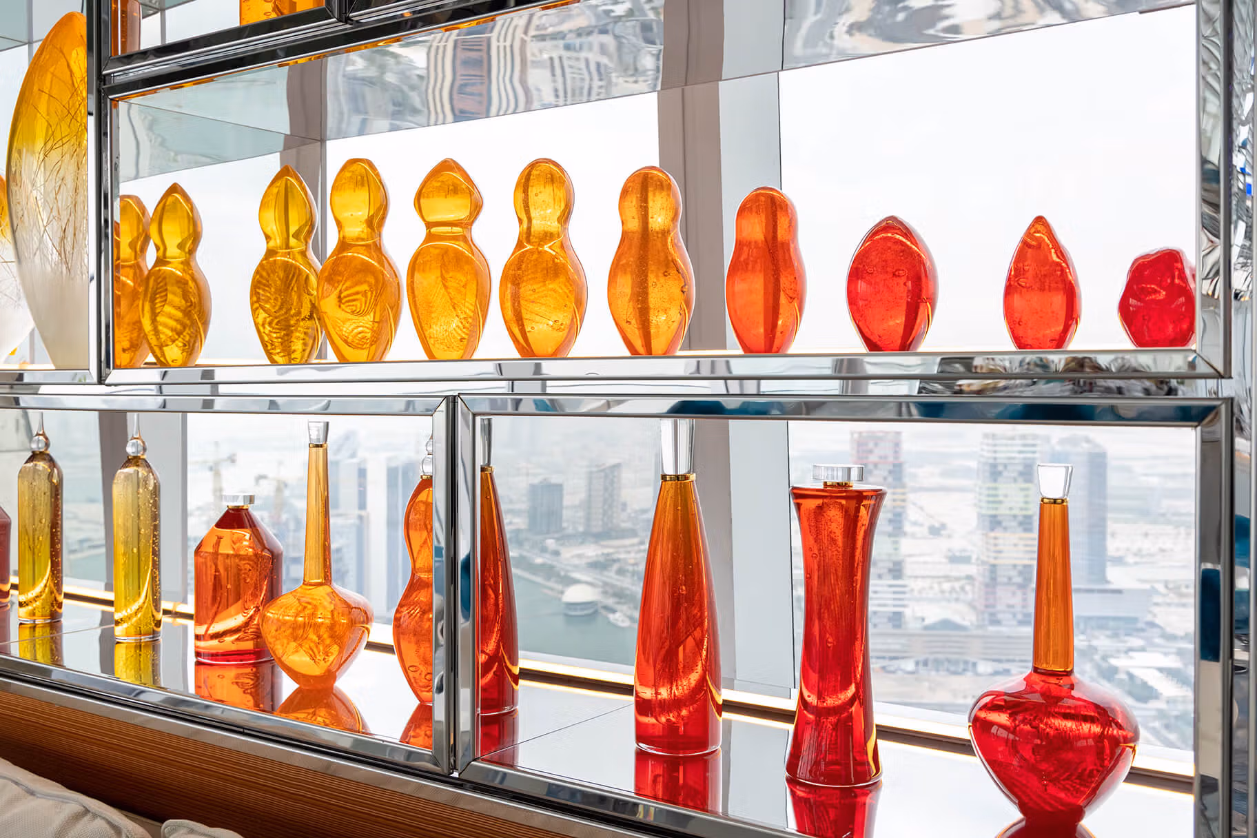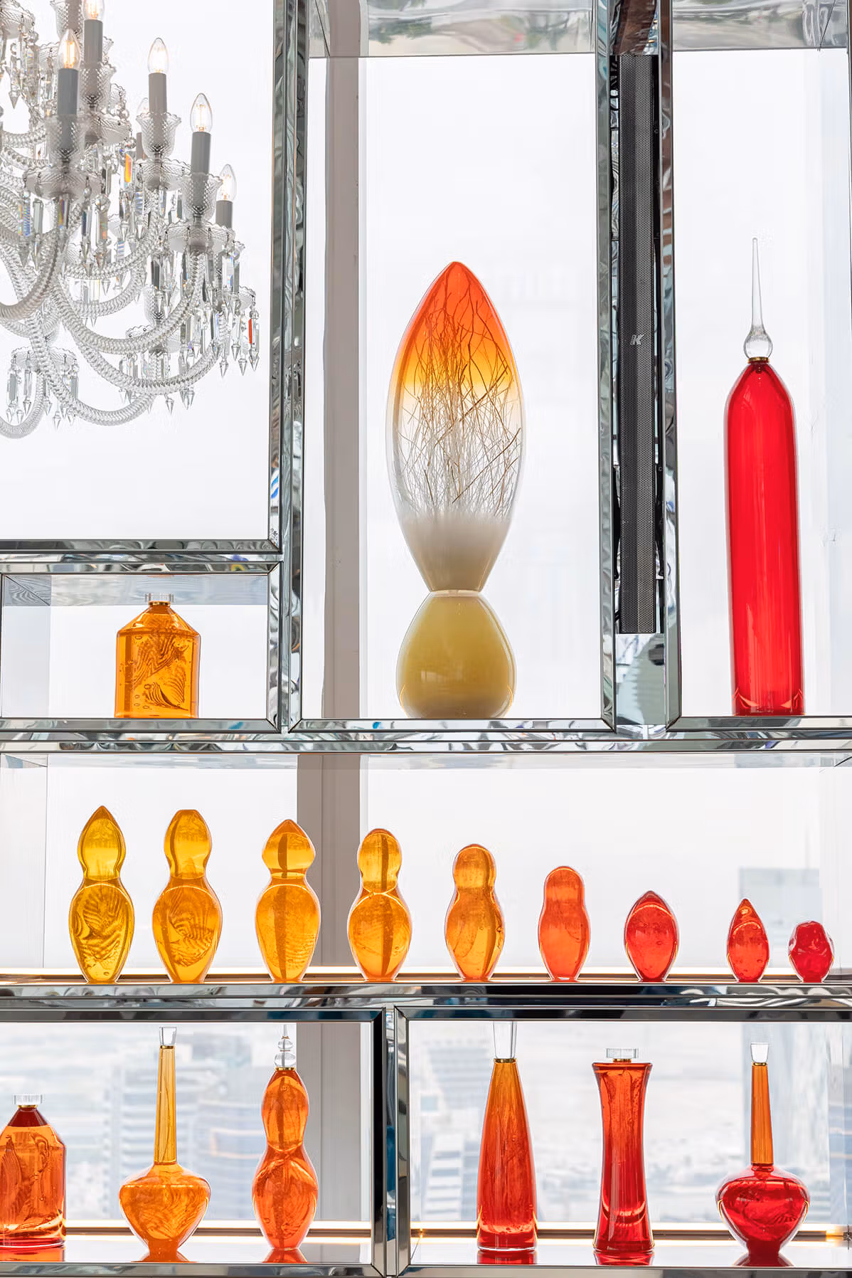 The installation was crafted by master glass artisan Louis Thomson using sand sourced from the Qatari desert and beaches. The design incorporates forms inspired by Qatari culture and landscape, creating a meaningful connection between material, place, and concept.