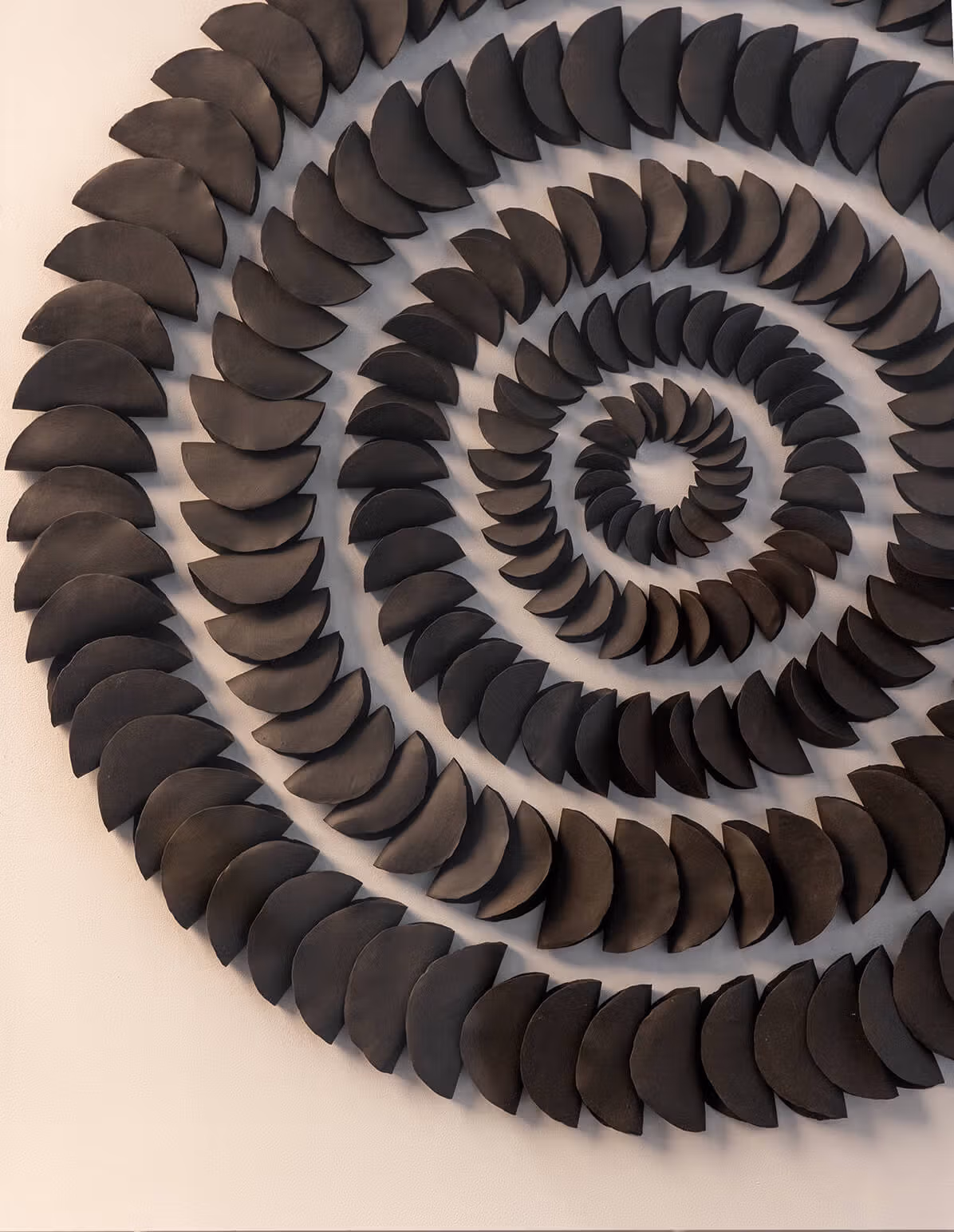 Drawing on the aesthetics of ancient ceramics, the artist uses repetition and thoughtful arrangement to evoke the strength and continuity of tradition through form. The arts of infusion and ceramics unite in this installation, complemented by an nearby piece that explores the aromatic qualities of infusion.