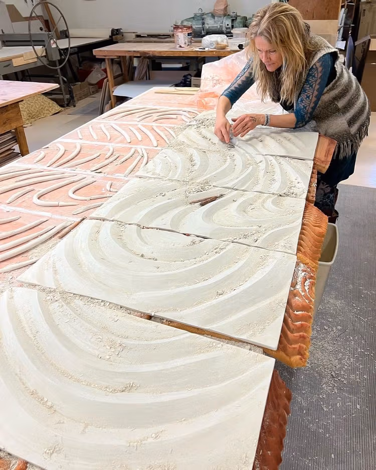 Believing that true understanding comes through shared perception, artist Natalie Blake transformed an aerial image of a dune into individually hand-crafted clay tiles, placing a piece in each guest room. Only through the collective views of all guests does the full dune emerge.