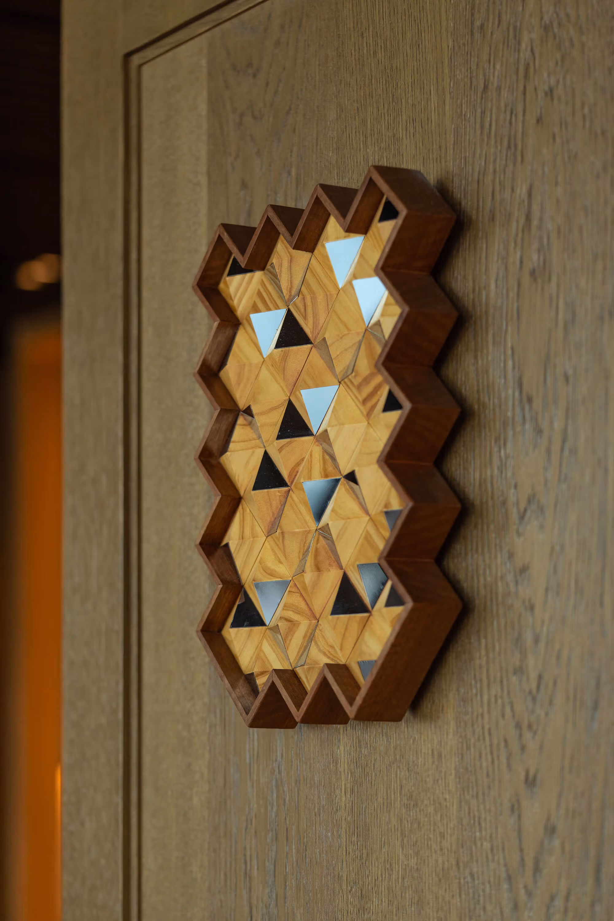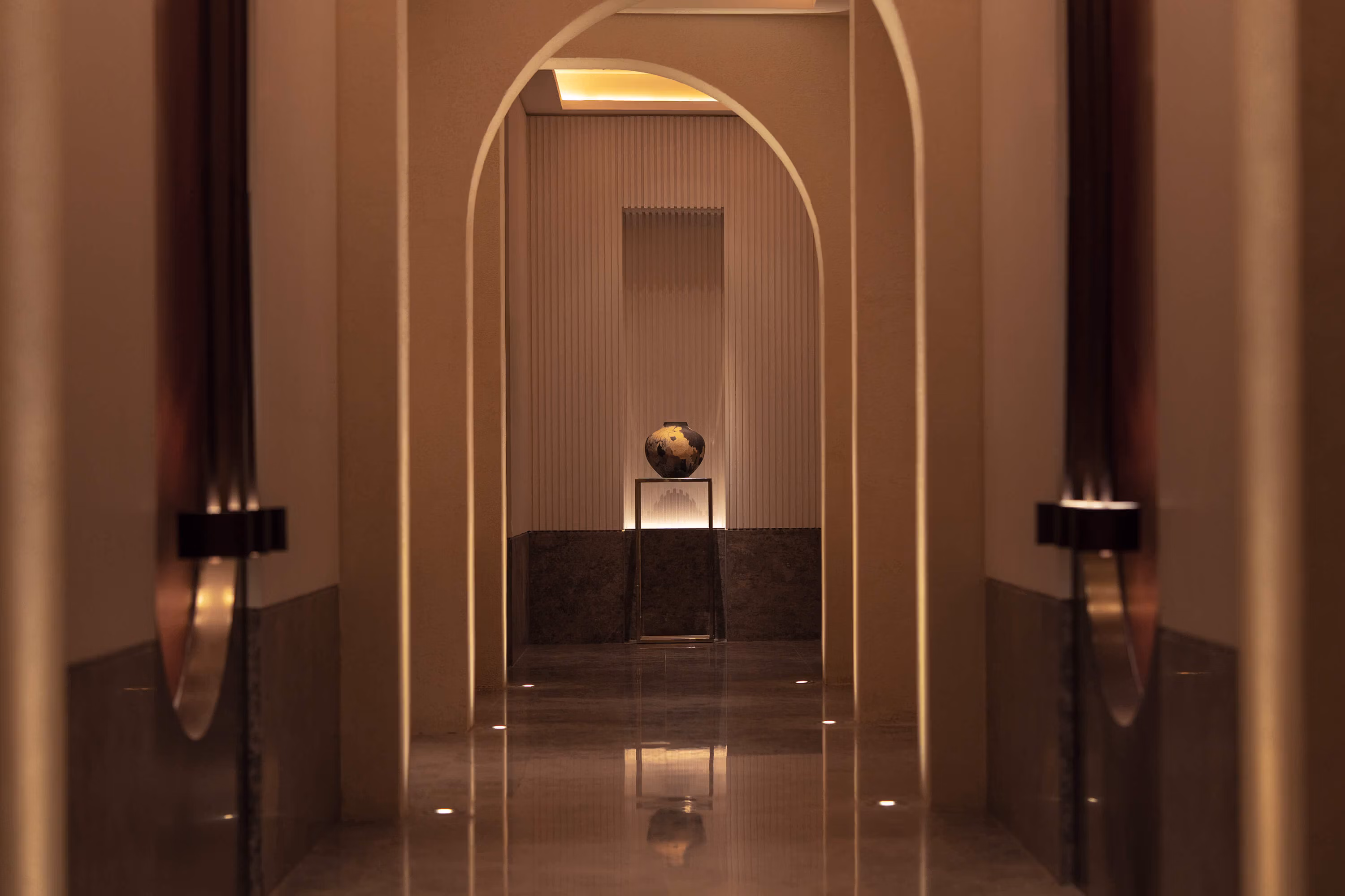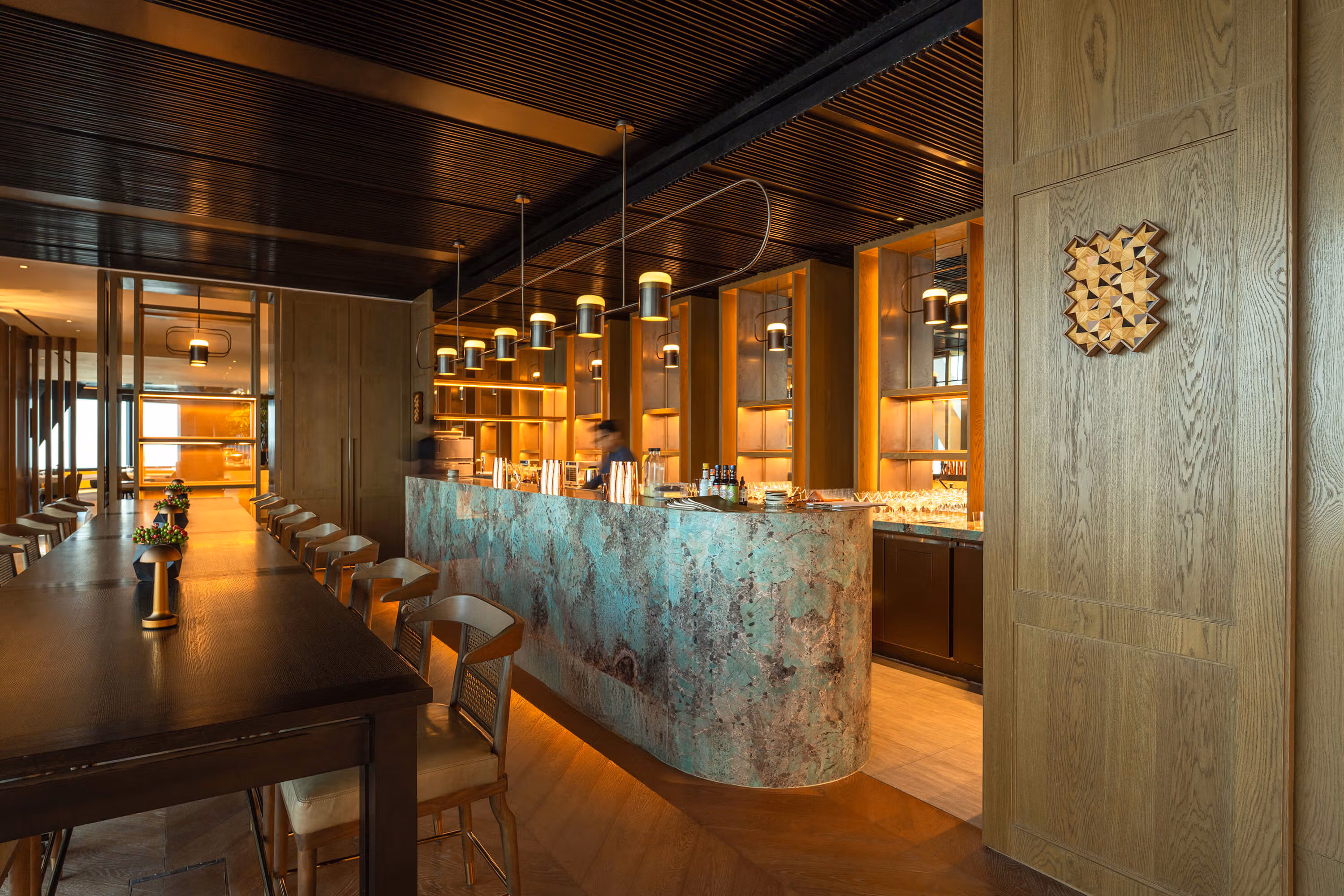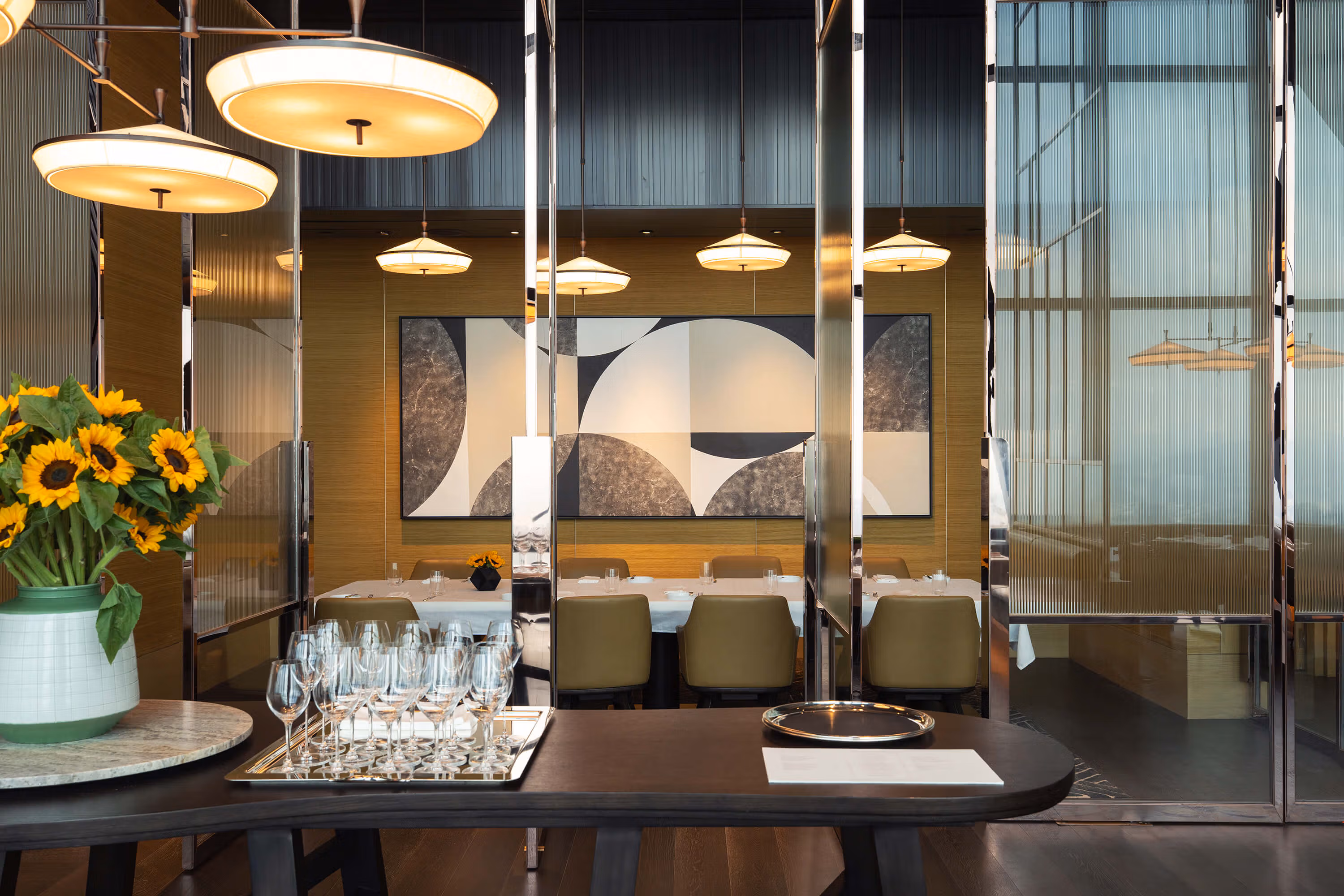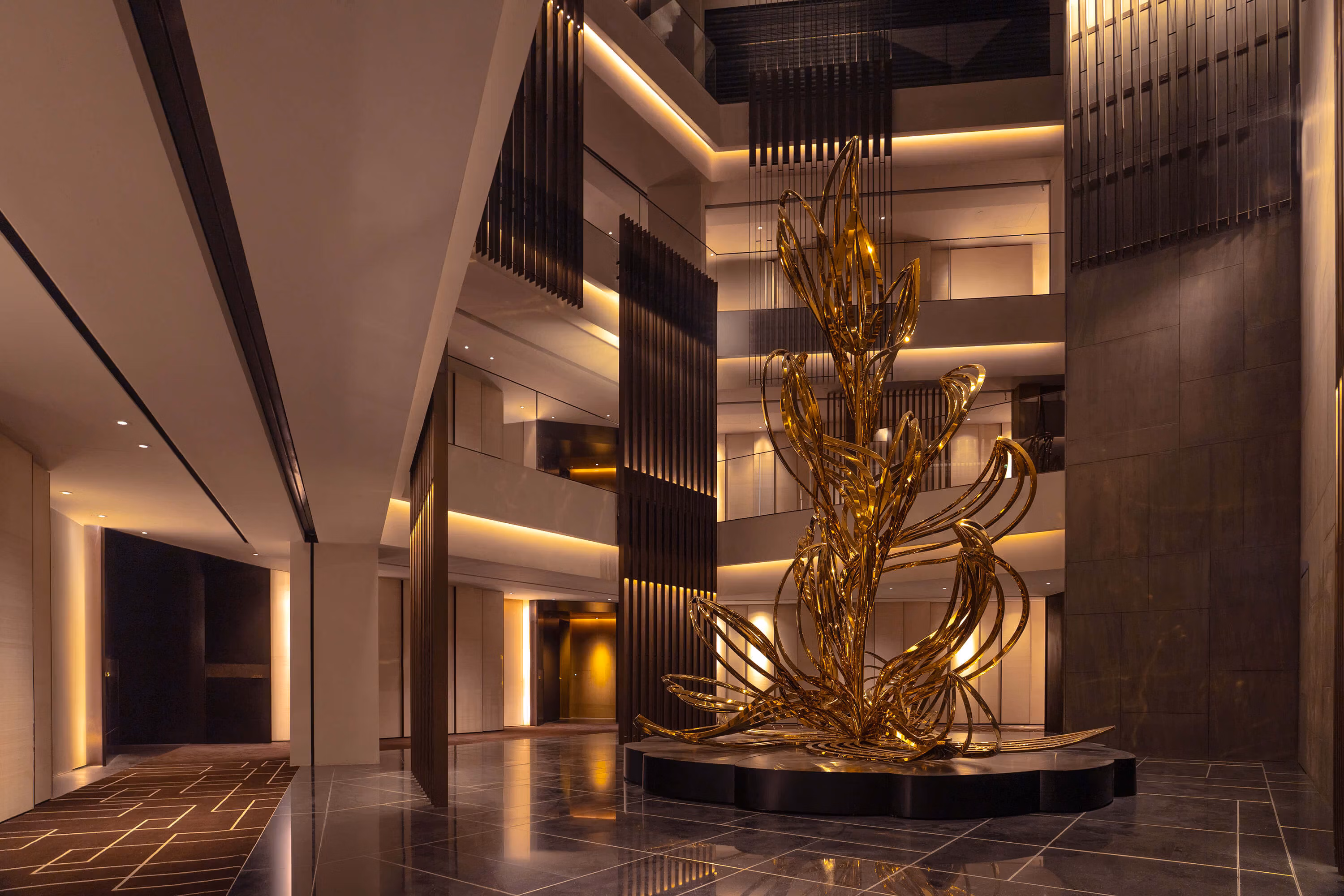 As guests step into the atrium, they are met by a breathtaking six meter tall sculpture by acclaimed Malaysian artist Abdul Multhalib Musa. Drawing inspiration from Malaysia’s lush flora and the motifs woven throughout its rich cultural heritage, Abdul transforms steel into flowing, organic forms that seem to move with light and air. A highlight of the collection, this special commission celebrates the local flora and the artistry of Malaysia, offering a striking first impression for every visitor. Bringing the piece to life was no small feat. Because of the hotel's location on the 102nd floor, the sculpture had to be transported in small sections, and assembled on-site by a skilled logistics team. Even the base was engineered in modular parts, with each connection point designed to blend seamlessly into the form so that every joint became an intentional part of the sculpture’s design.