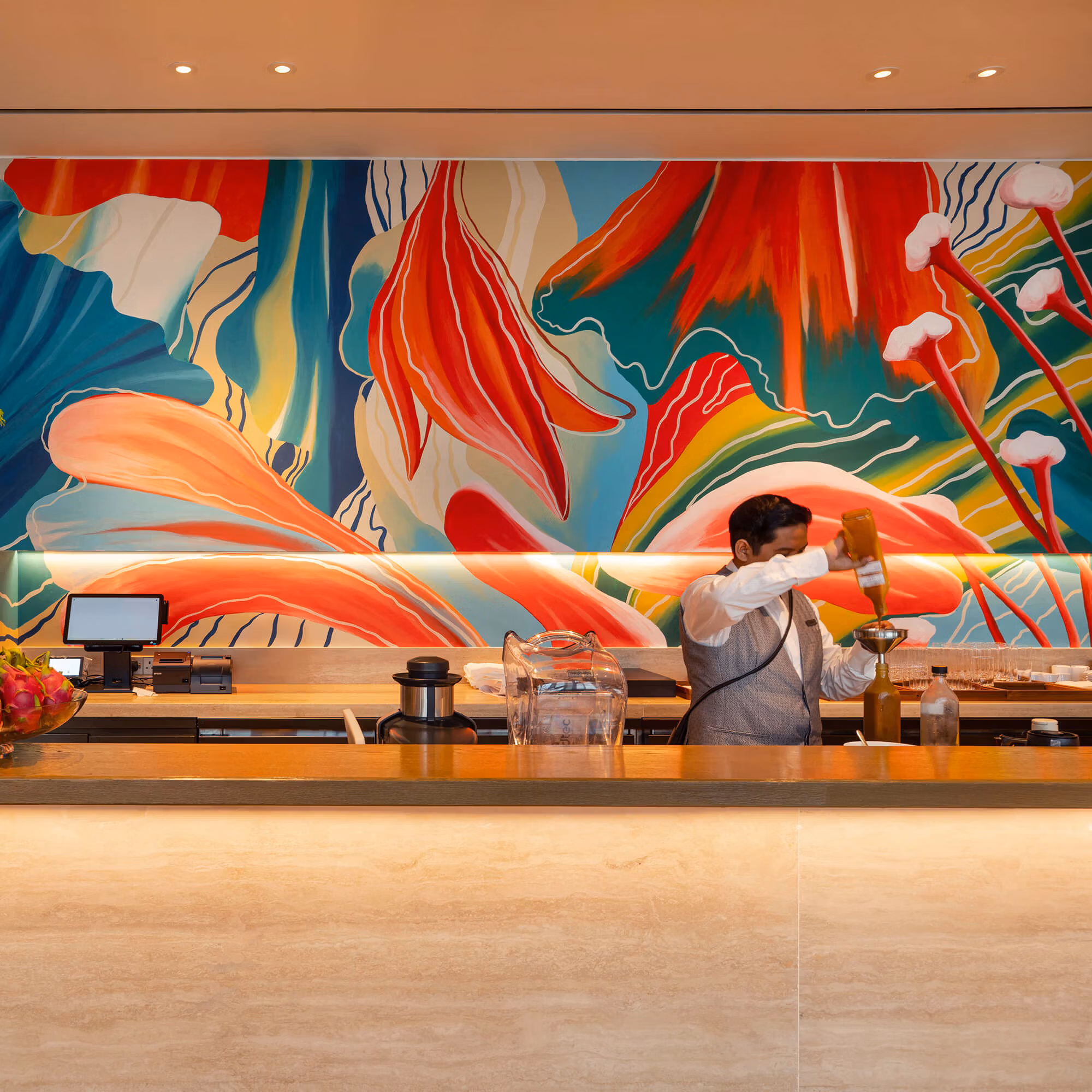 Developed in close collaboration with the client and under the art direction of our curators, the piece was painted on site, bringing a distinctly local and handcrafted presence to the space.