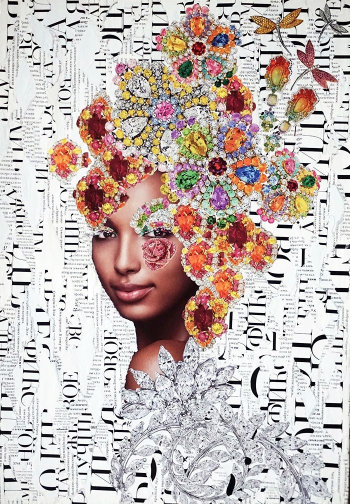 Every face tells a story. In this case, the story is of decadence, love, and luxury. Every one of these digital collages is a love letter to the fashions of the 1940s and 1950s. The artist herself started in the field of fashion, studying garment design before taking her naturally creative visions to depict more than the clothes and jewels, but the women behind them.