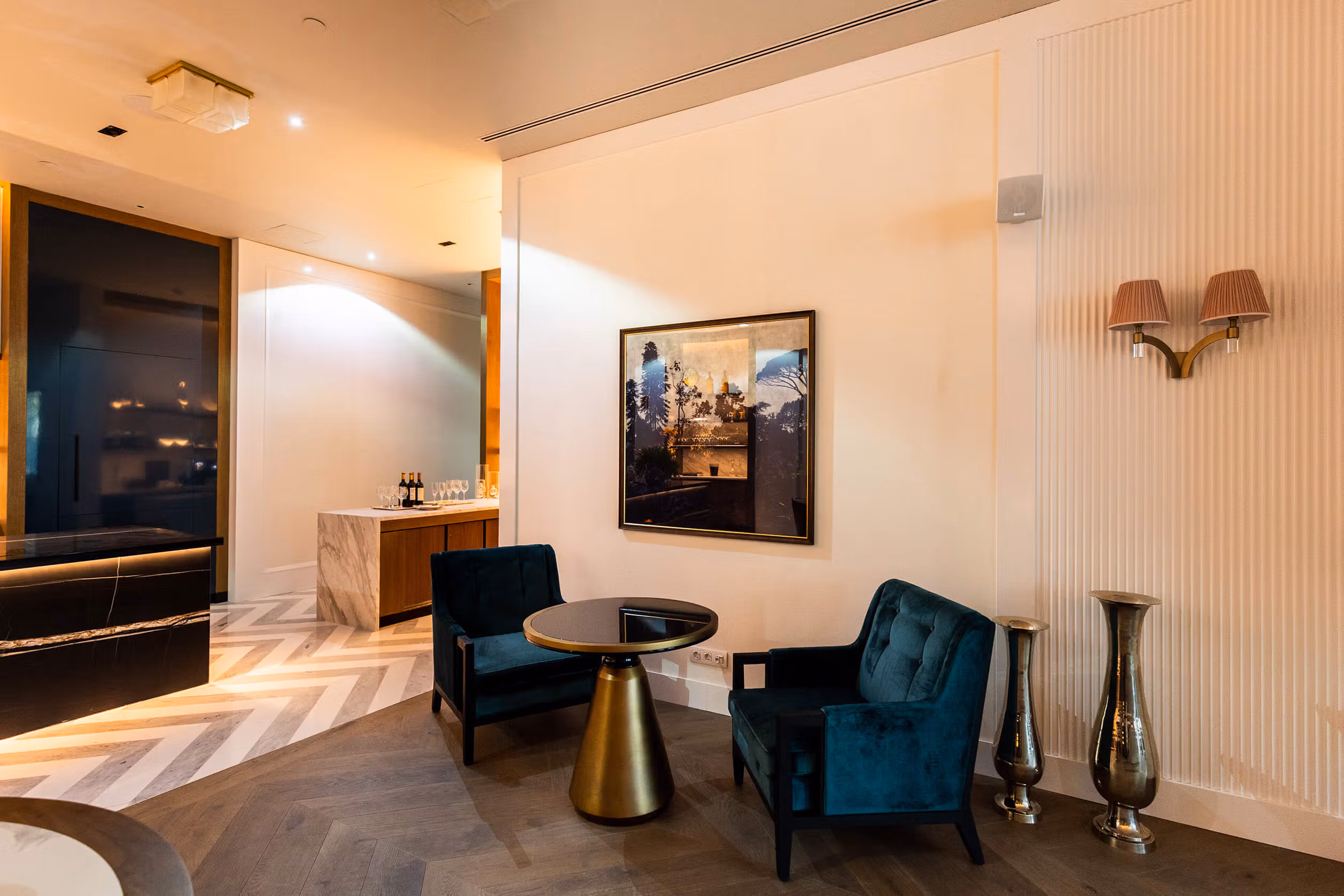 Entering Villa Magna through the impressive boulevard of Paseo de la Castellana, one steps into an authentic, yet unique residential experience. The Arrival area is spirited by the richly layered heritage of the house, once home to Spanish aristocrats with a taste for art. Villa Magna is the manifestation of ingenious architecture and the finest craftsmanship. Those are echoed in the exquisitely crafted stone, ceramic and metal artwork, which dominates the eye upon arrival.