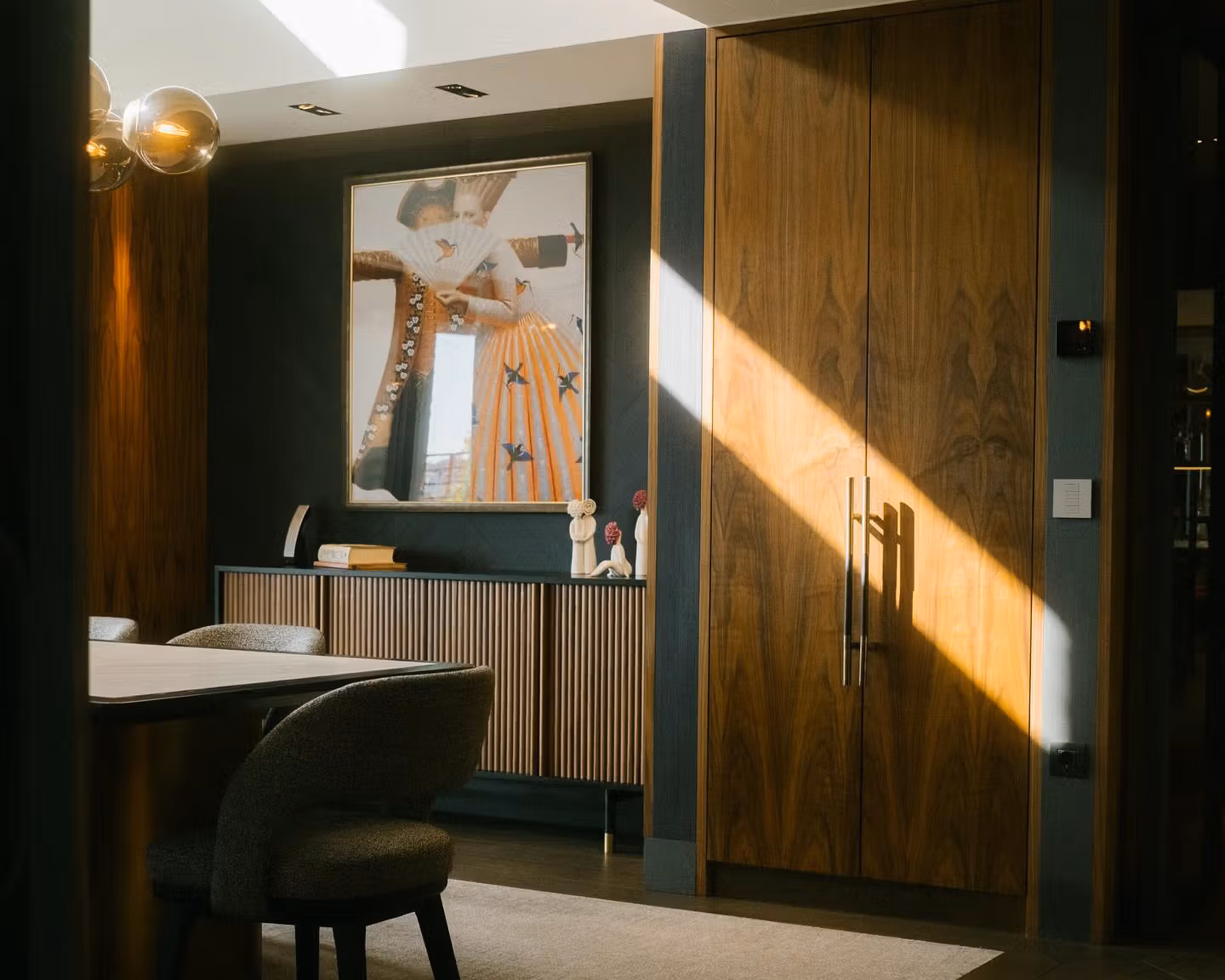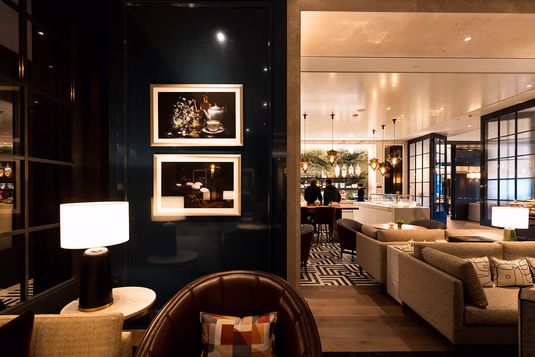 The hotel’s Patisserie area draws its inspiration from the vivid and authentic ambiance of famous Madirlenian pastelerías. The patisserie is a place where one can enjoy the warmth of a familiar taste all while appreciating new exquisite creations. The art in the Patisserie creates an intimate ambiance with a contemporary touch.