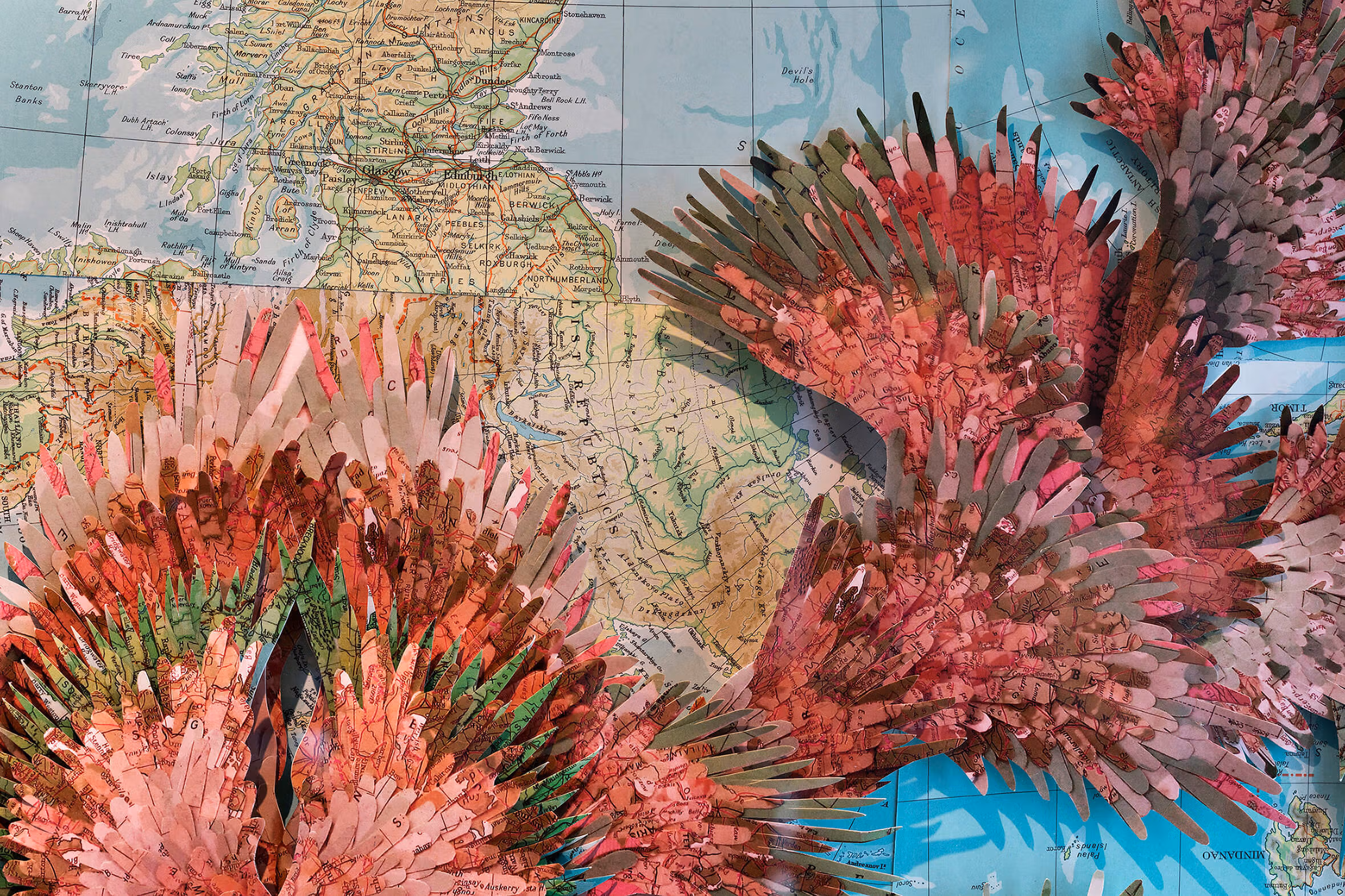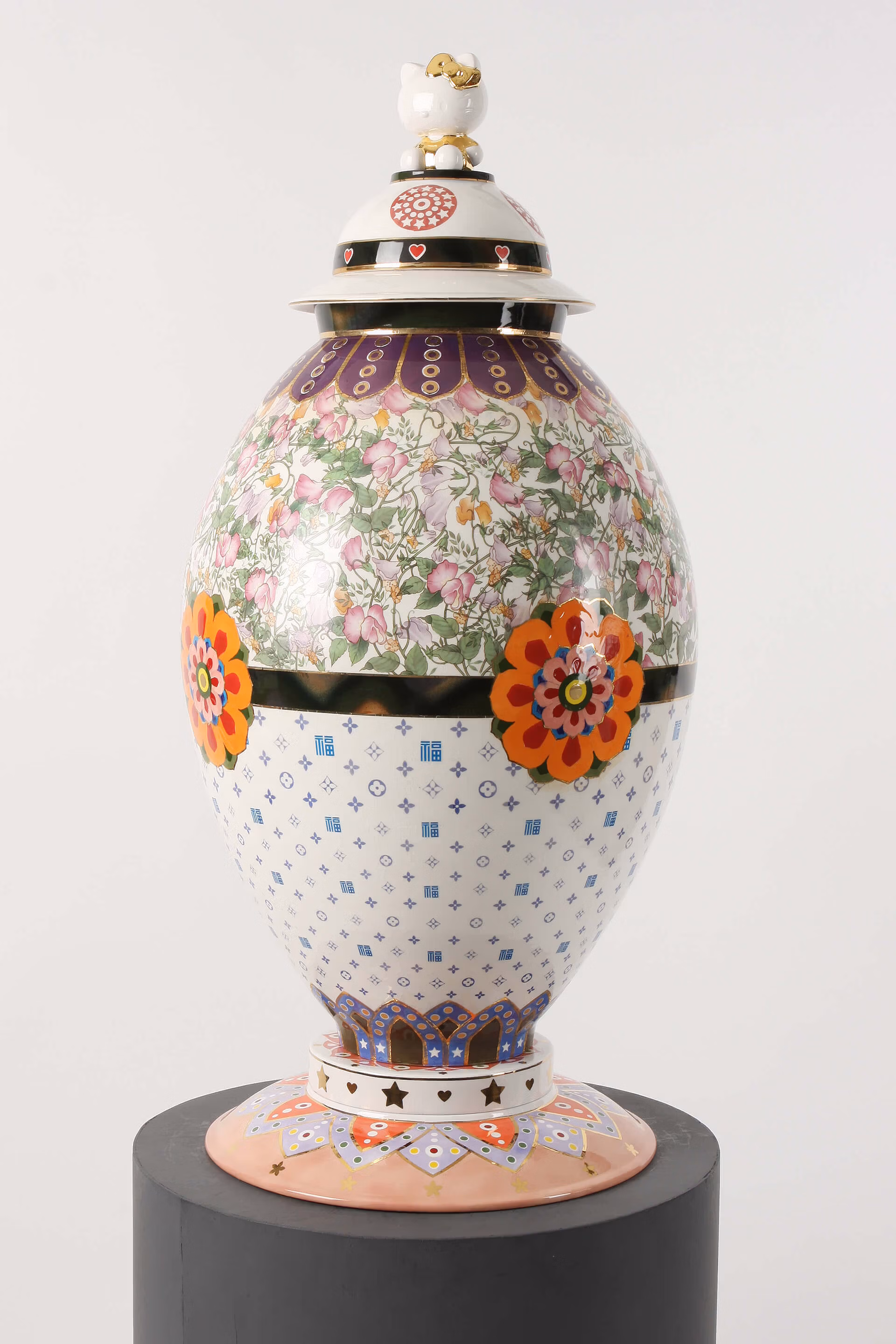 ArtLink installed the work of Korean ceramic artist Yoo Eui Jeong, whose vases explore the theme of travel and cross-cultural pollination in two bespoke pieces for the Seabourn ships. Jeong uses timeless Korean vase-masking techniques to produce works that are a bricolage of cultural references: Western pop icons collide with traditional Asian design motifs to create one-of-a-kind vases that are displayed in the Lift Lobbies of the Encore and Ovation. Since collaborating with ArtLink, Jeong has become more established and has recently exhibited in the V&A.