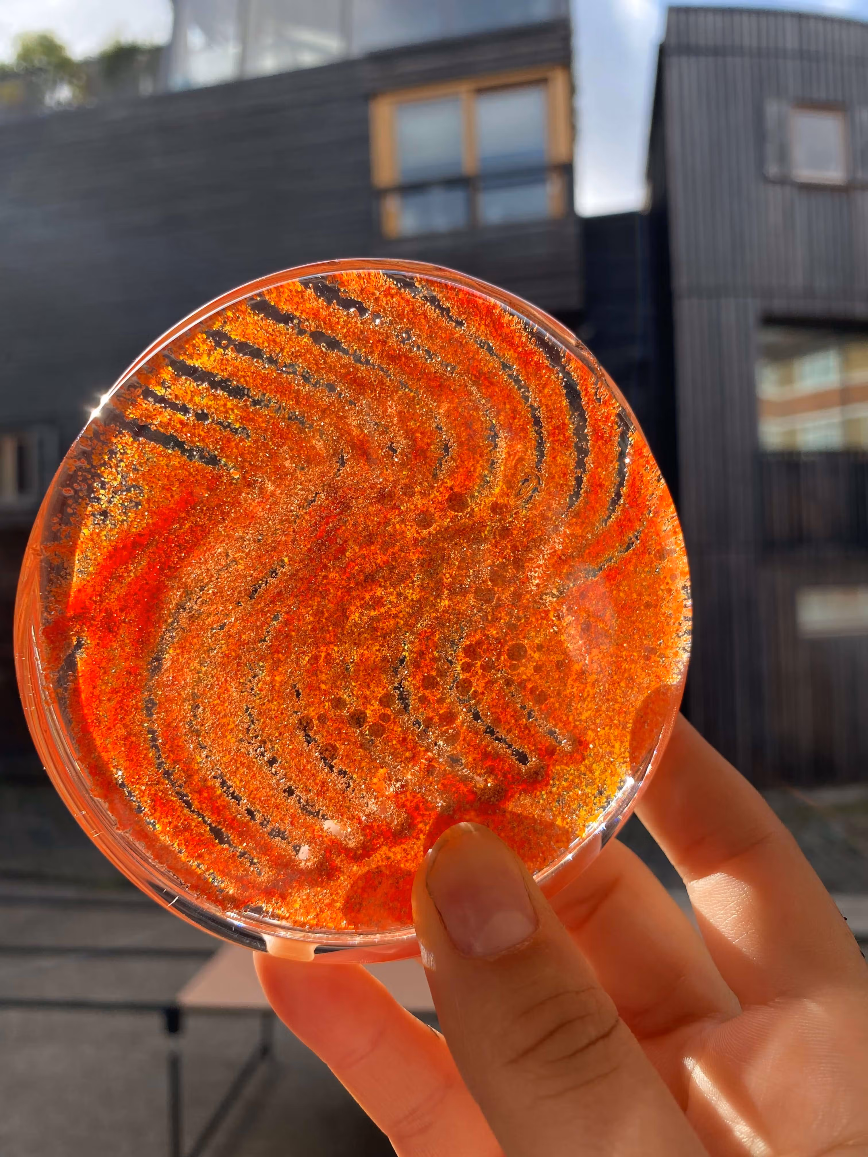 In keeping with the narrative, encapsulated in each object is sand collected from the Qatari landscape. For the FIRE installation pieces, the artist used sand collected from the Qatari desert, arranging it in patterns reminiscent of the undulating dunes. Conversely, in the pieces designed for the ICE installation, the artist used sand sourced from Qatari beaches, fashioning patterns evocative of the intricate reefs and sandy shores.