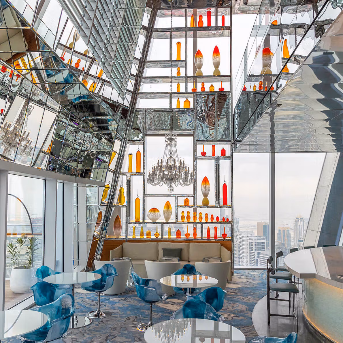 The FIRE & ICE glass installation for the Fairmont Doha’s Fire & Ice Restaurant (since renamed to Provok) offers a stunning fusion of artistry and environment. An artistic interpretation of raw materiality and the Qatari landscape, the installation is a seamless integration of the landscape's essence into the opulent interior of the hotel, forging a tangible link between its luxurious setting and the natural splendor of Qatar.