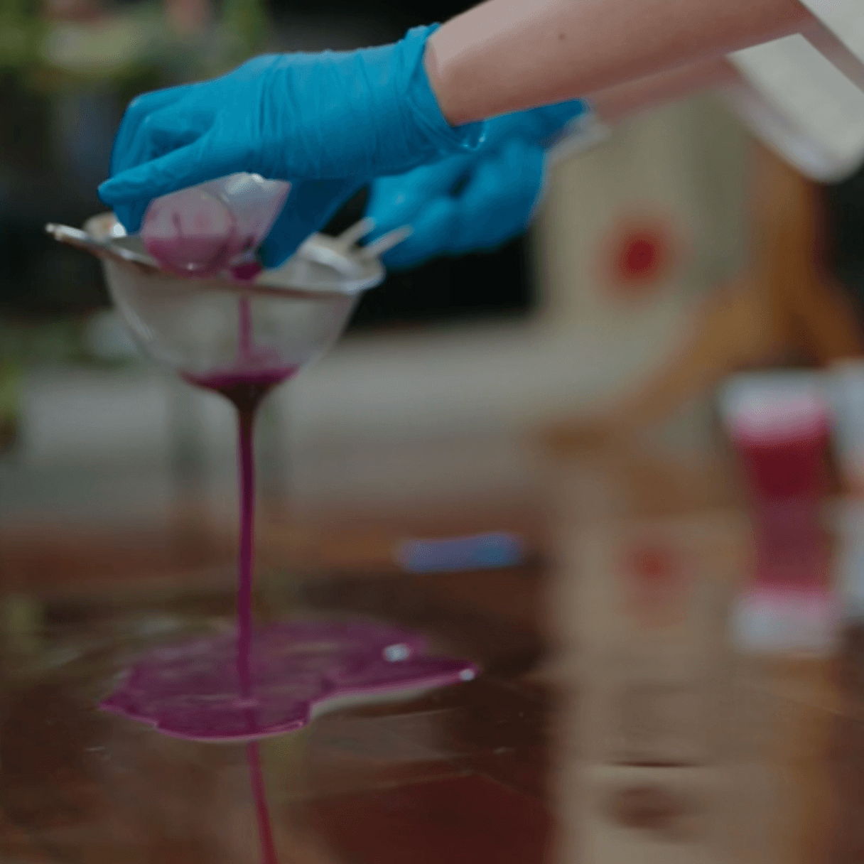 I am always adjusting and adding variation within my process. I’ll use mica powder and acrylic high flow paints to color most of my work. I use vegetable/fruit based dye for other pieces.