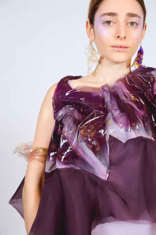 In my particular case, I am drawing attention to the beauty that bioplastics can have. They are already used as an alternative textile but haven’t gotten a large market share yet. Biomaterial hasn’t been made alluring or in vogue. If artists can make them sexy and appealing, this attracts the attention of trendsetters and celebrities. When social leaders have or wear a new textile, the larger public becomes more aware and receptive to buying a newer and more sustainable textile.