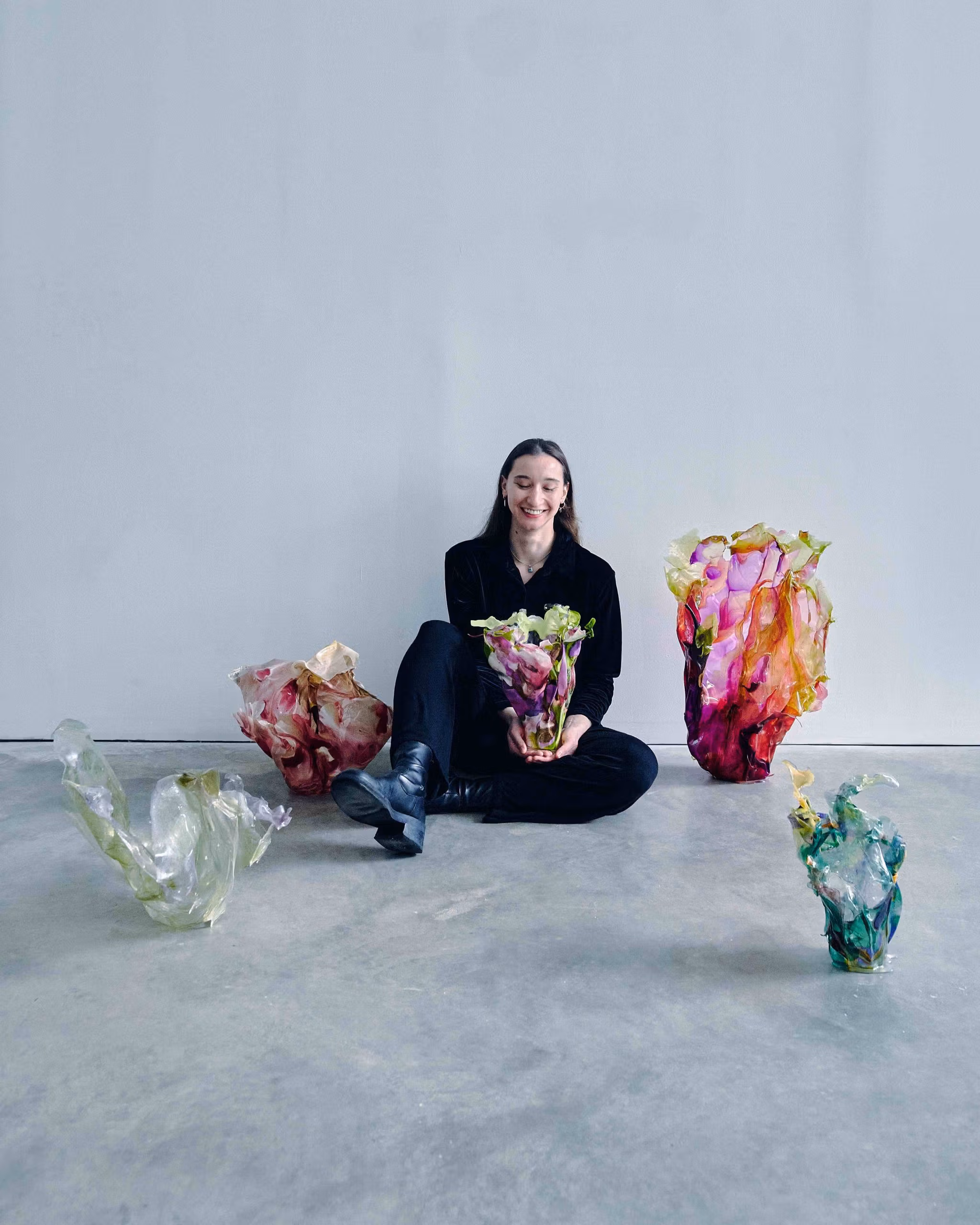 ArtLink is always on the lookout for emerging talent with innovative and unique approaches to art. When we came across Caroline Zimbalist’s bioplastic works, we were immediately intrigued by her fresh perspective and handling of these interesting materials. An emerging artist, Caroline embodies the values we cherish at ArtLink—creativity, innovation, and a dedication to eco-friendly practices. This made her work a perfect fit for ArtLink’s recent TUI Mein Schiff 7 project that was centered around the client’s ethos of discovery and dedication to sustainability, resulting in a large commission of artworks for the ship. We had the pleasure of discussing Caroline’s artistic process, inspirations, and the journey that led her to create the bioplastic sculptures, now featured onboard.