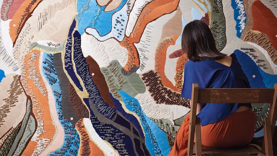 We really enjoy working with artists and artisans that push the boundaries of their craft to find creative solutions to its limitations. The artisans at Bangkok-based Ease Studio strive to breakthrough the limitations of machine stitching when creating large scale works by experimenting with different hand-embroidery techniques and materials.