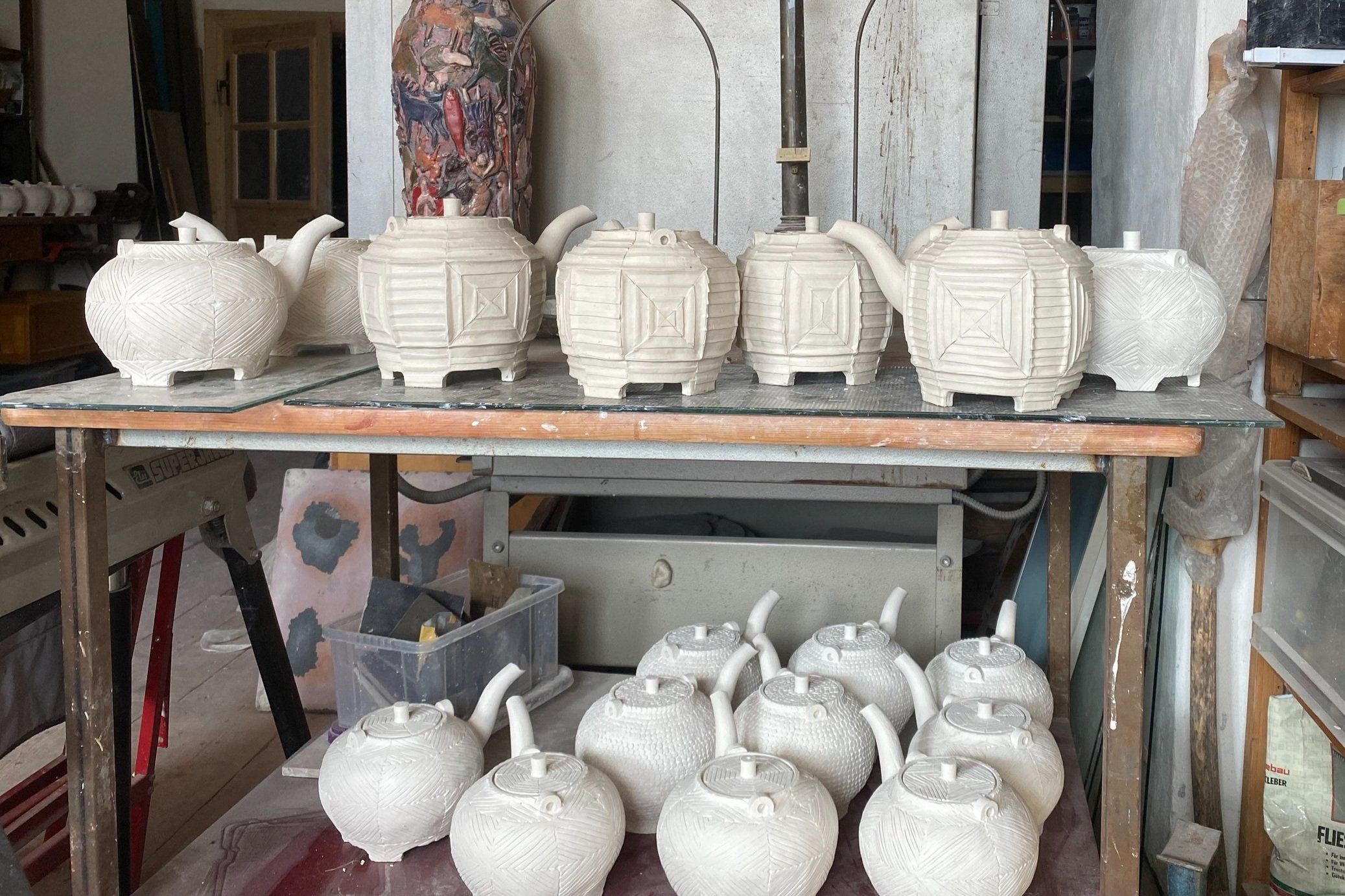 Kati typically works on one piece at a time, meticulously focusing on the smallest details to ensure each item is unique. However, the commission for 64 teapots posed a new challenge: completing the entire order within just three months to be delivered in time for installation.